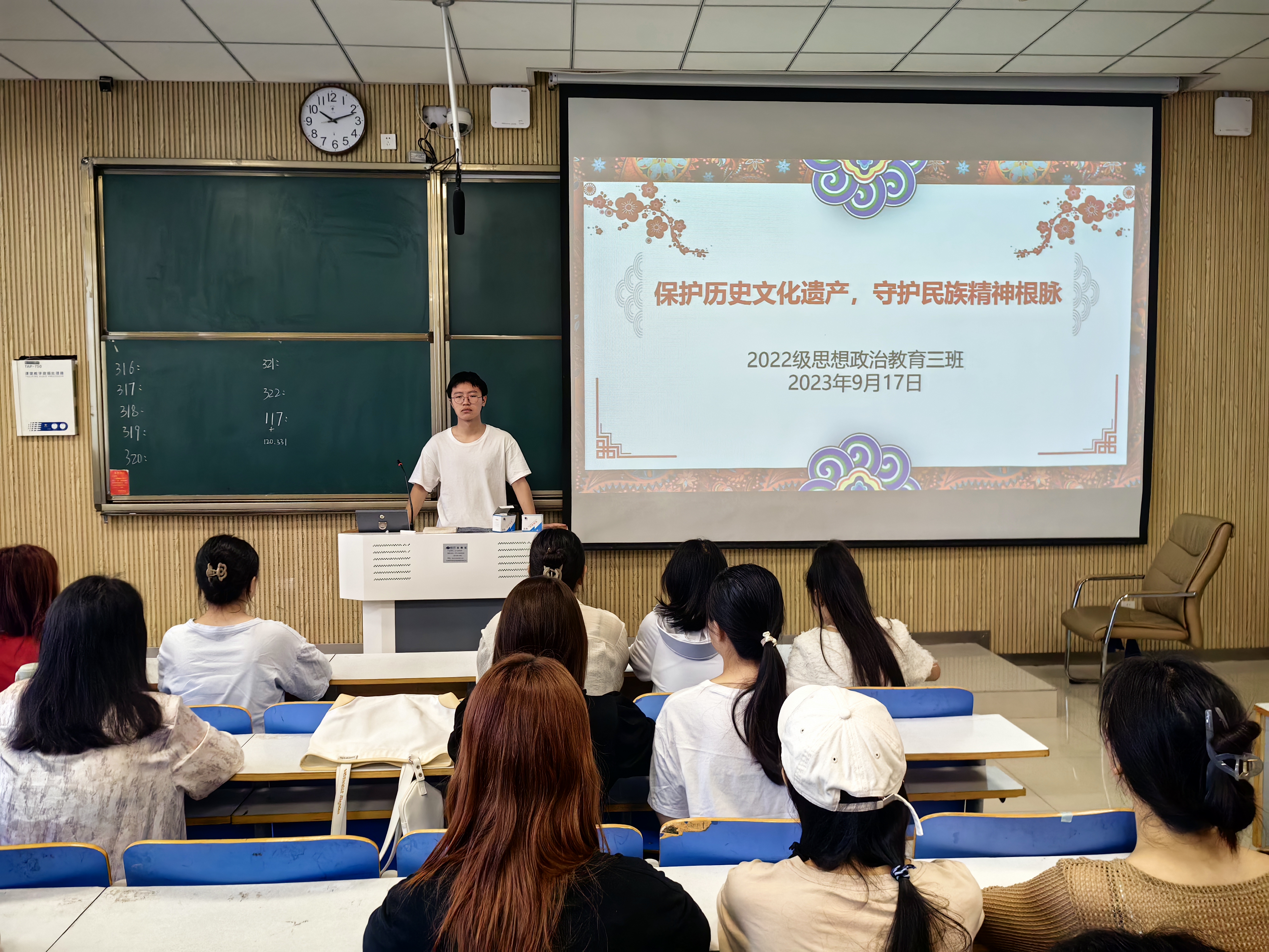 9月17日上午,sjb世俱杯网站2022级思想政治教育三班在社科楼515教室召开“保护历史文化遗产,守护民族精神根脉”主题团课。世俱杯官网2022级思想政治教育三班全体成员共同参加此次团课。团课由团支书余浩洋主持。