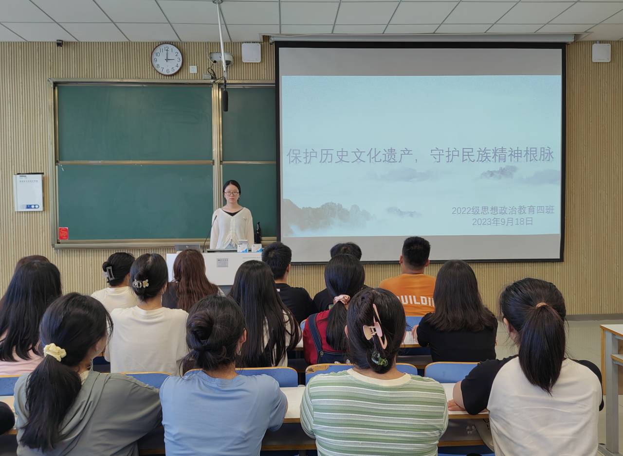 为进一步提高大家对历史文化遗产的保护意识,营造文化遗产保护的良好社会氛围,9月18日下午,sjb世俱杯网站2022级思想政治教育四班在社科楼515教室召开“保护历史文化遗产,守护民族精神根脉”主题团课。世俱杯官网2022级思想政治教育四班全体同学参与本次班会。团课由团支书牛志杰主持。