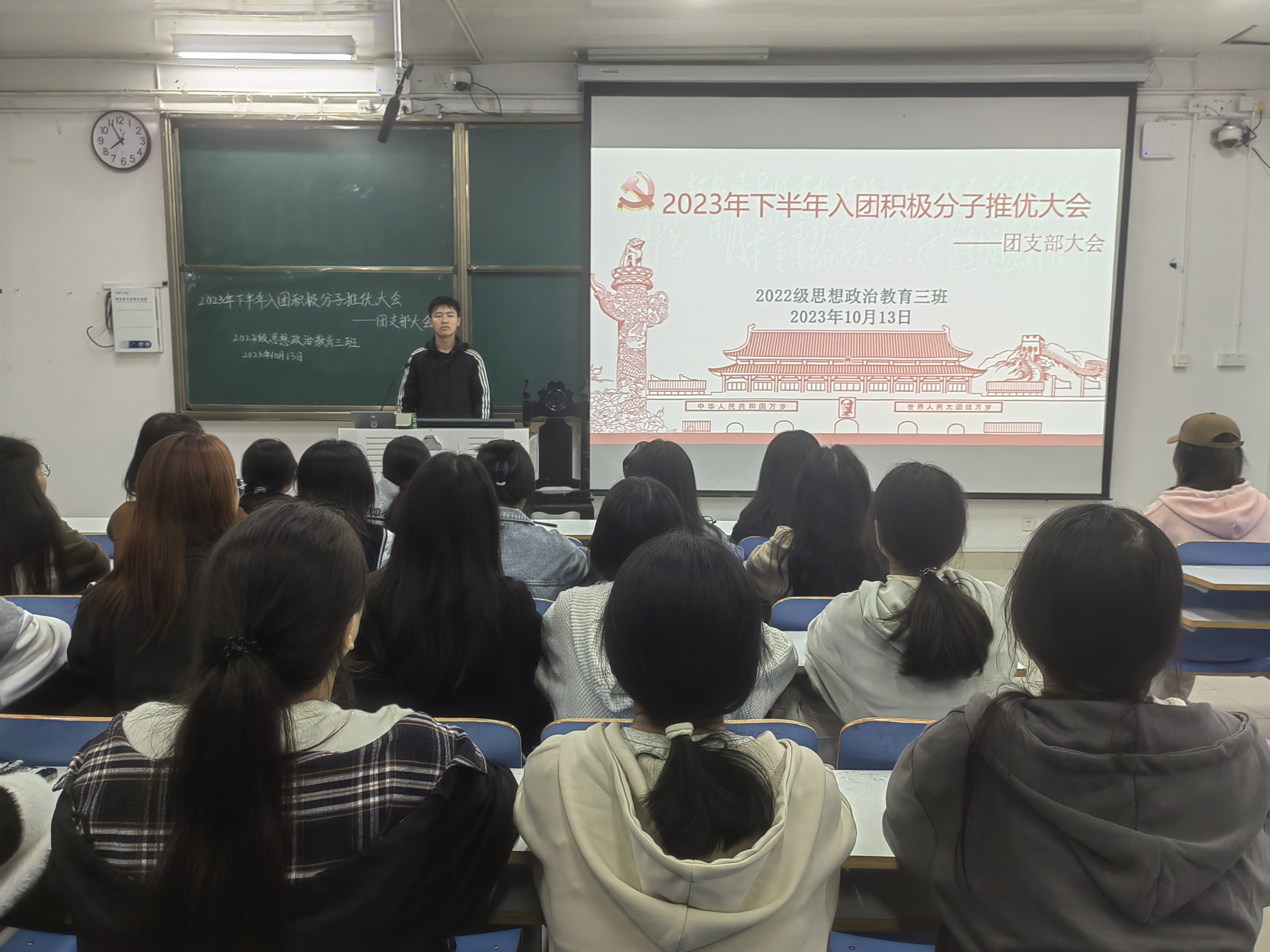 10月13日上午,sjb世俱杯网站2022级思想政治教育三班在514教室开展入团积极分子推优大会。世俱杯官网2022级思想政治教育三班全体团员共同参与此次推优大会。大会由团支书余浩洋主持。