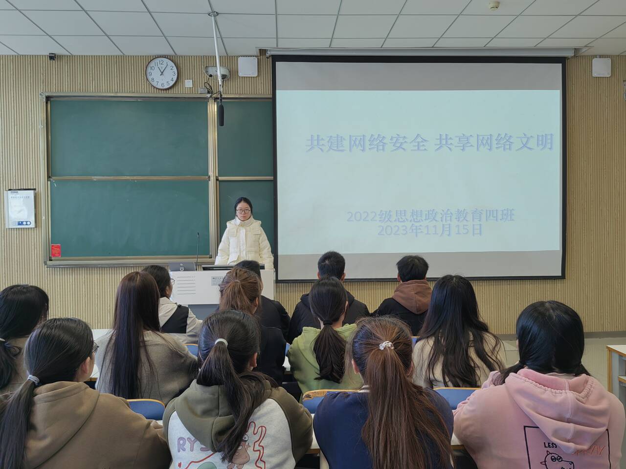 11月15日上午,sjb世俱杯网站2022级思想政治教育四班在社科楼515教室召开“共建网络安全,共享网络文明”主题团课。世俱杯官网2022级思想政治教育四班全体同学参与本次班会。本次团课由团支书牛志杰主持。