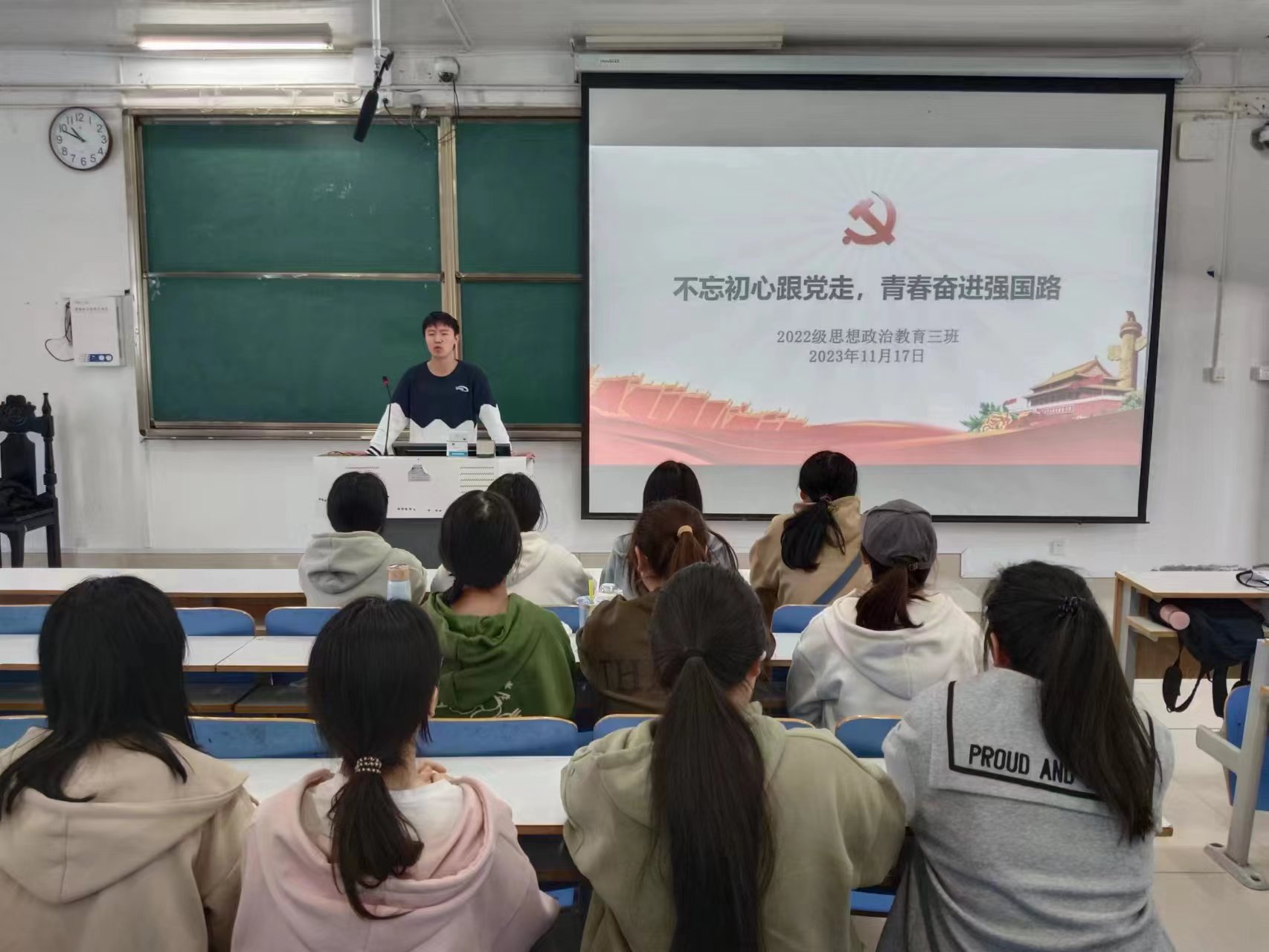 11月17日上午,sjb世俱杯网站2022级思想政治教育三班在社科楼514教室召开“不忘初心跟党走,青春奋进中国路”主题团课。世俱杯官网2022级思想政治教育三班全体成员共同参加本次团课,团课由团支书余浩洋主持。