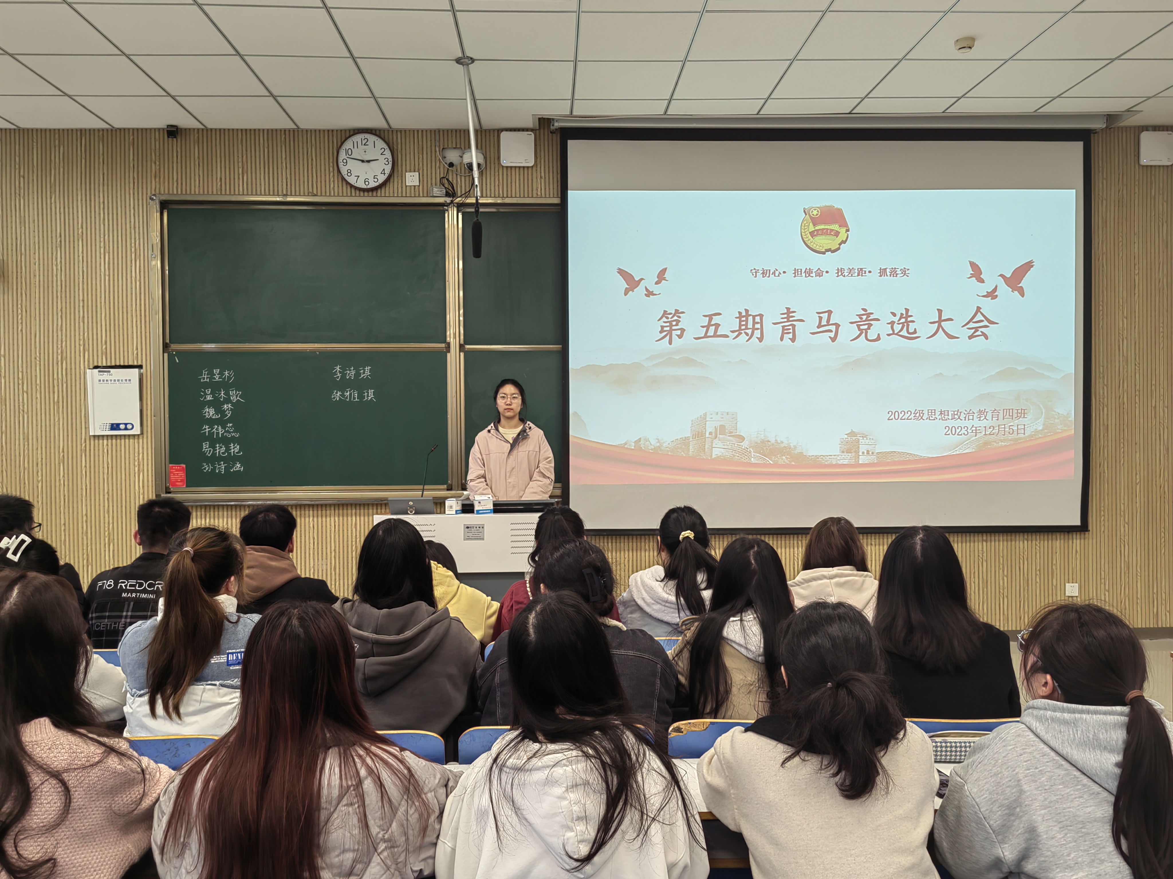 为进一步学习贯彻习近平新时代中国特色社会主义思想,保障青年马克思主义者培养工程接续发展,12月5日下午,sjb世俱杯网站2022级思想政治教育四班在社科楼515教室召开第五期青马竞选大会。世俱杯官网2022级思想政治教育四班全体同学参与本次班会。本次团课由团支书牛志杰主持。