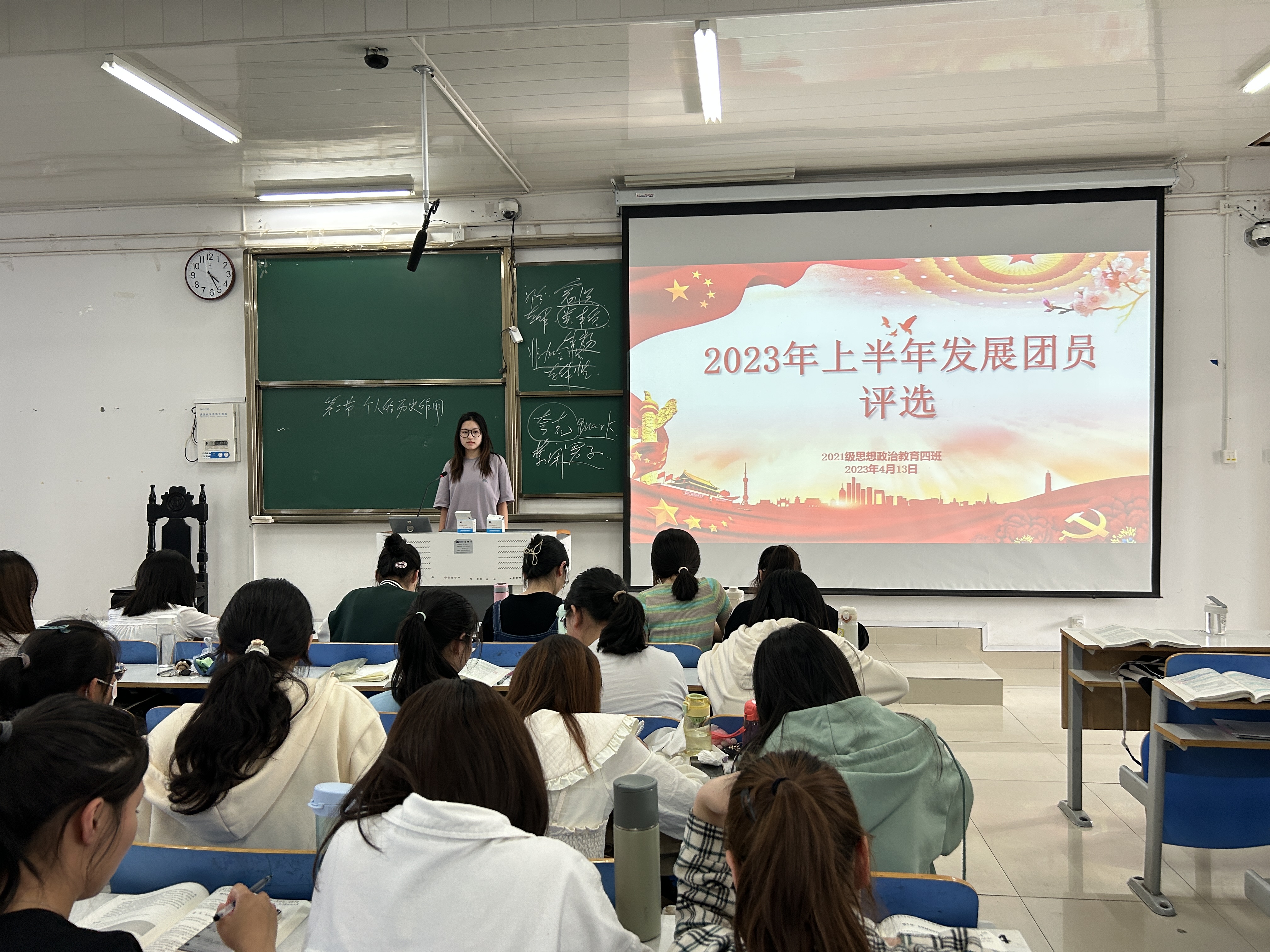 4月13日下午,sjb世俱杯网站2021级思想政治教育四班在社科楼514教室召开2023年下半年发展团员民主评议会。2021级思想政治教育四班全体团员共同参会。会议由团支书刘珂含主持。