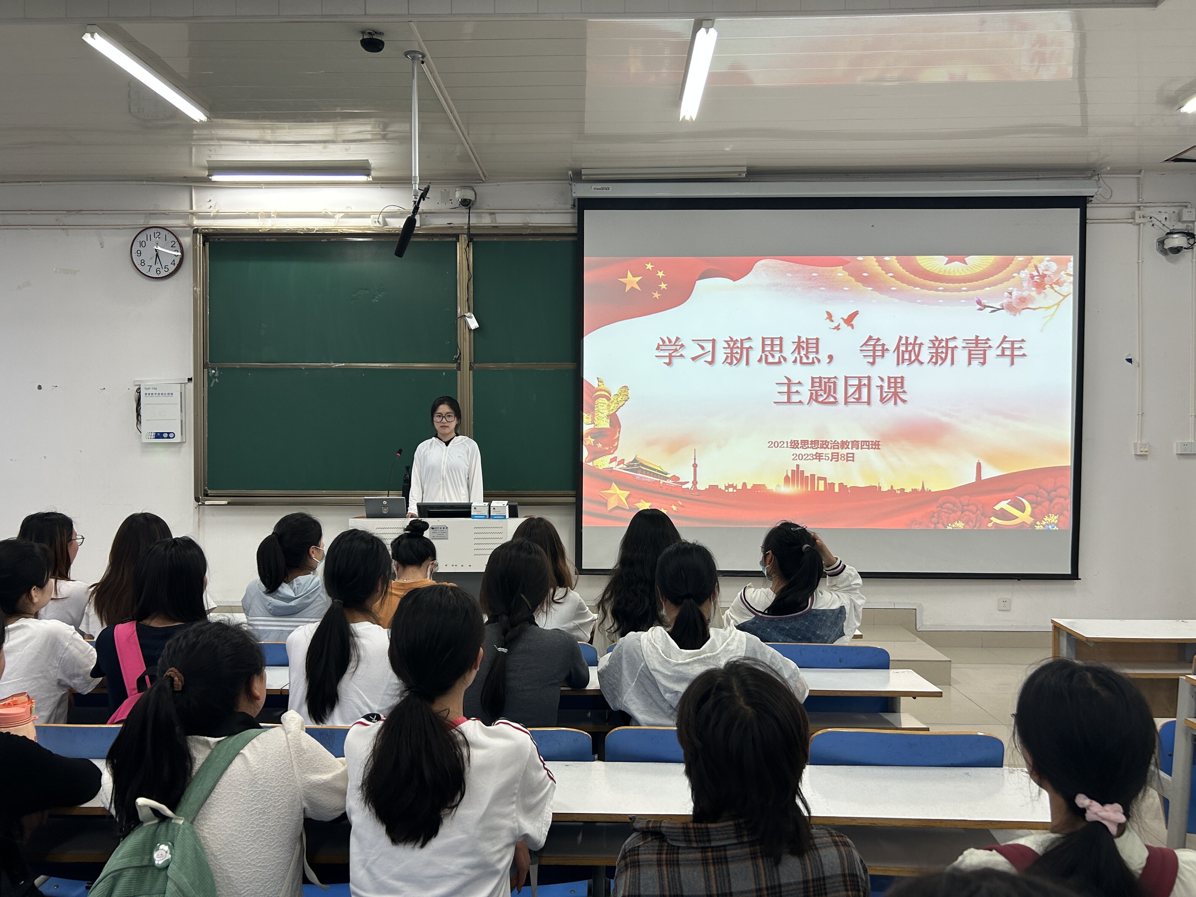 5月8日下午,sjb世俱杯网站2021级思想政治教育四班在社科楼514教室开展“学习新思想,争做新青年”主题团课。2021级思想政治教育四班全体团员参加本次团课。团课由团支书刘珂含主持。