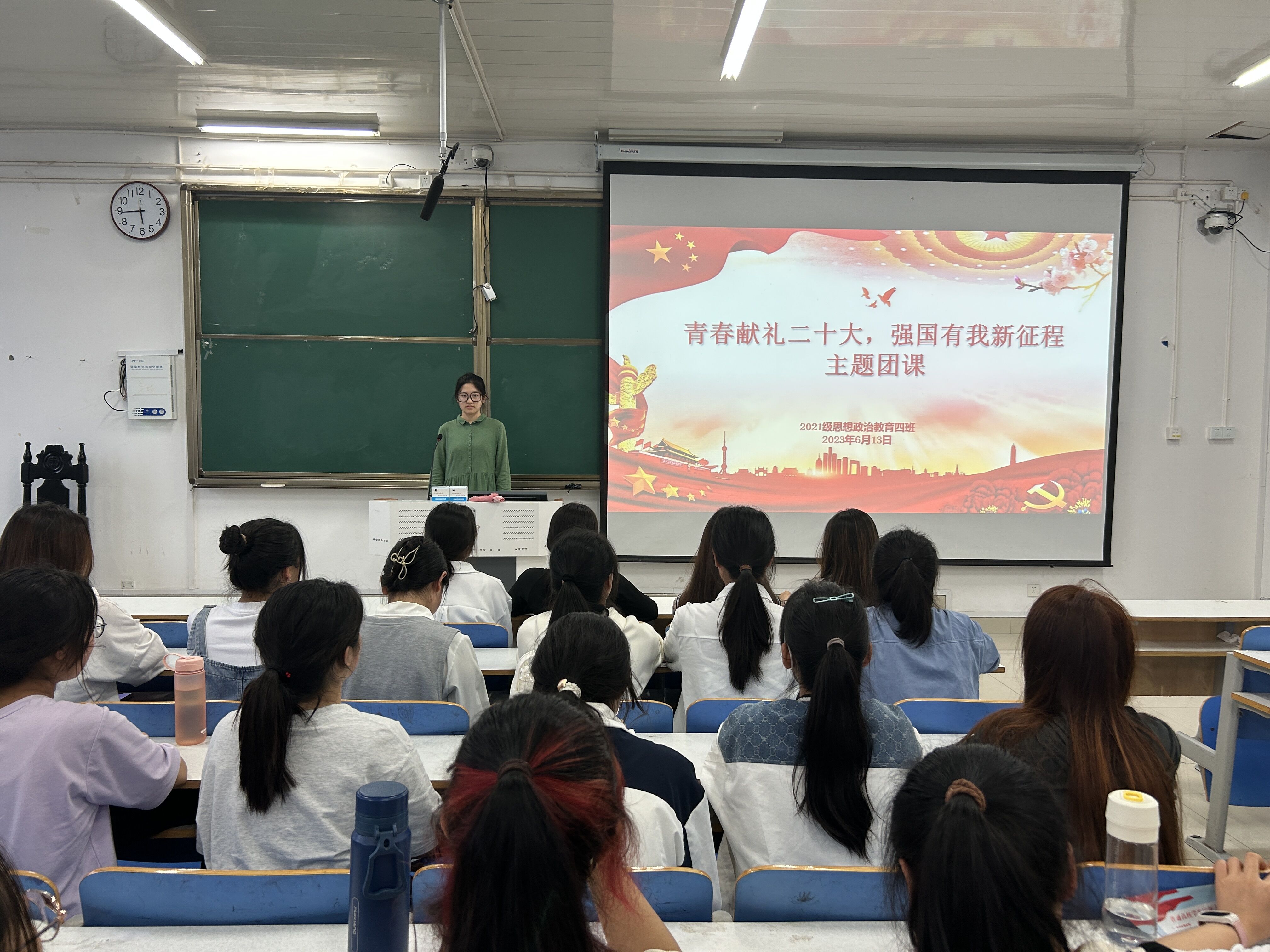 为深入贯彻学习党的二十大精神,6月13日下午,sjb世俱杯网站2021级思想政治教育四班在社科楼514教室开展“青春献礼二十大,强国有我新征程”主题团课。2021级思想政治教育四班全体团员参加本次团课。团课由团支书刘珂含主持。