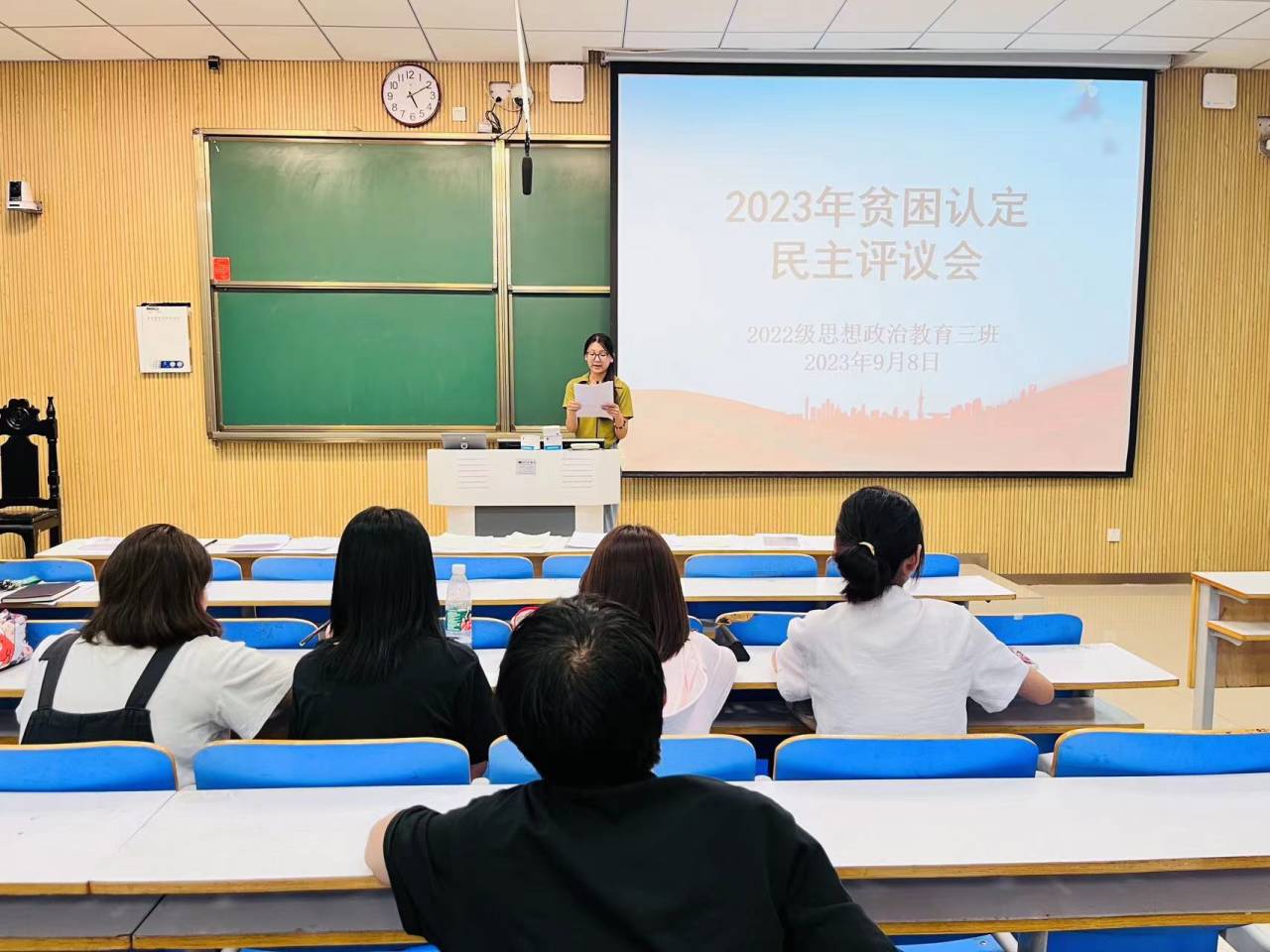 为确保家庭经济困难学生“应助尽助”,9月8日下午,sjb世俱杯网站2022级思想政治教育三班在社科楼515教室召开2023年贫困认定民主评议会。世俱杯官网2022级思想政治教育三班班主任吴梦云、8名学生评选代表和两名班委成员共同参与评议会。会议由班主任吴梦云主持。