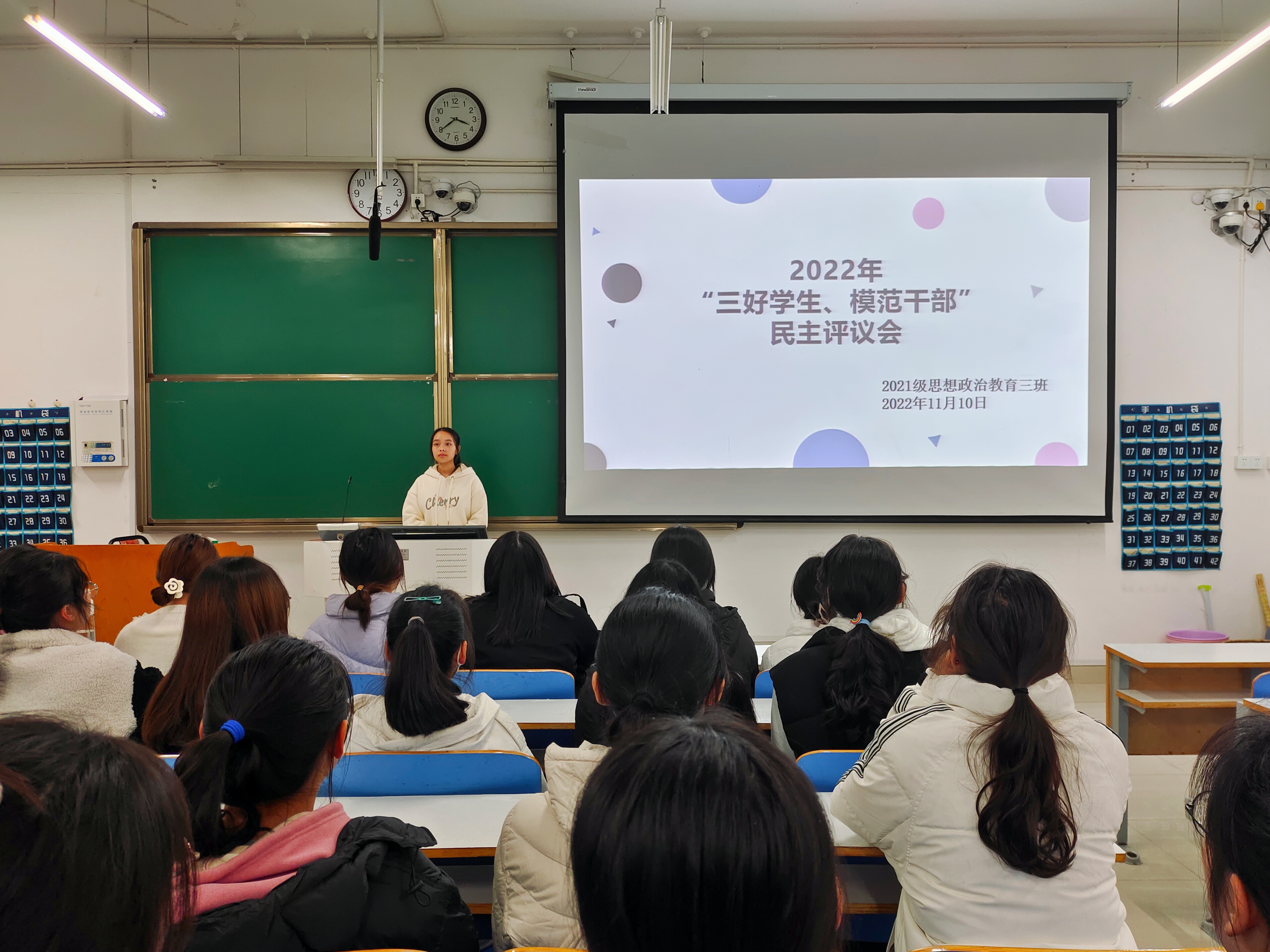 11月10日下午,sjb世俱杯网站2021级思想政治教育三班在社科楼514召开2022年“三好学生、模范干部”民主评议会。sjb世俱杯网站2021级思想政治教育三班全体成员参与此次会议。会议由团支书王岚霄主持,王岚霄任检票员,陈笑宇任记录员。