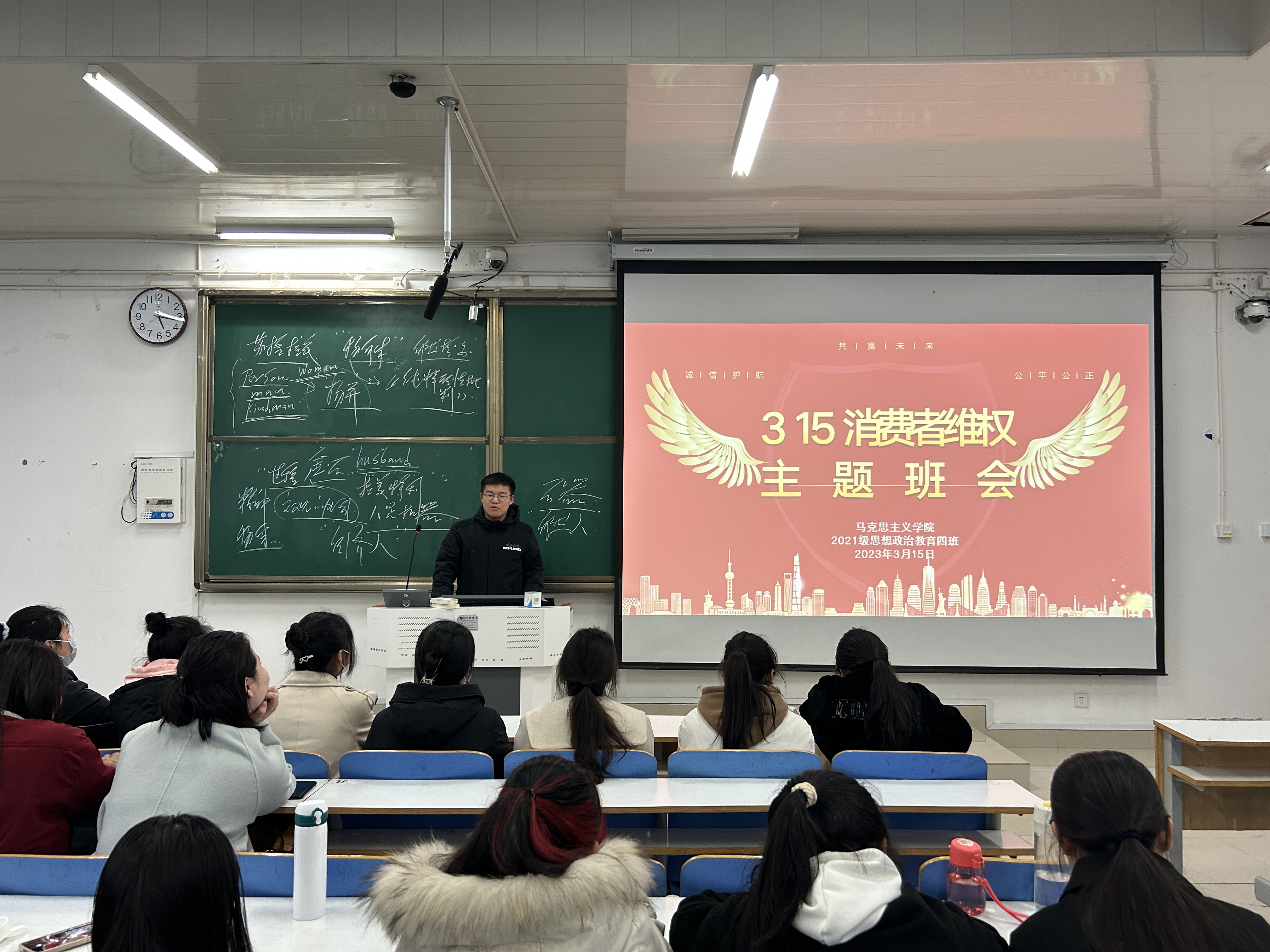 为了扩大消费者权益保护的宣传,提高我班同学维权意识和能力,3月5日下午,sjb世俱杯网站2021级思想政治教育四班在社科楼514教室开展“315消费者维权”主题班会。2021级思想政治教育四班全体成员共同参会,会议由副班长常康哲主持。