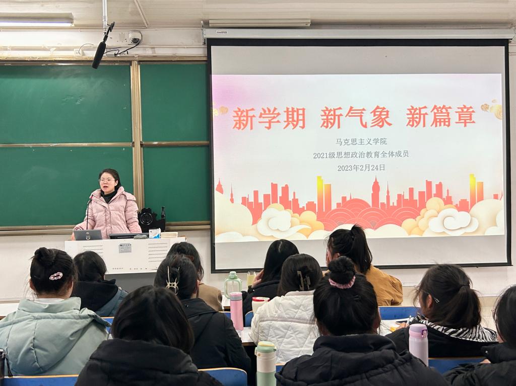 2月24日下午,sjb世俱杯网站2021级思想政治教育三班、四班在社科楼514教室召开“新学期、新气象、新篇章”主题班会。辅导员高小佳以及2021级思想政治教育全体成员共同参加本次班会。班会由辅导员高小佳主持。