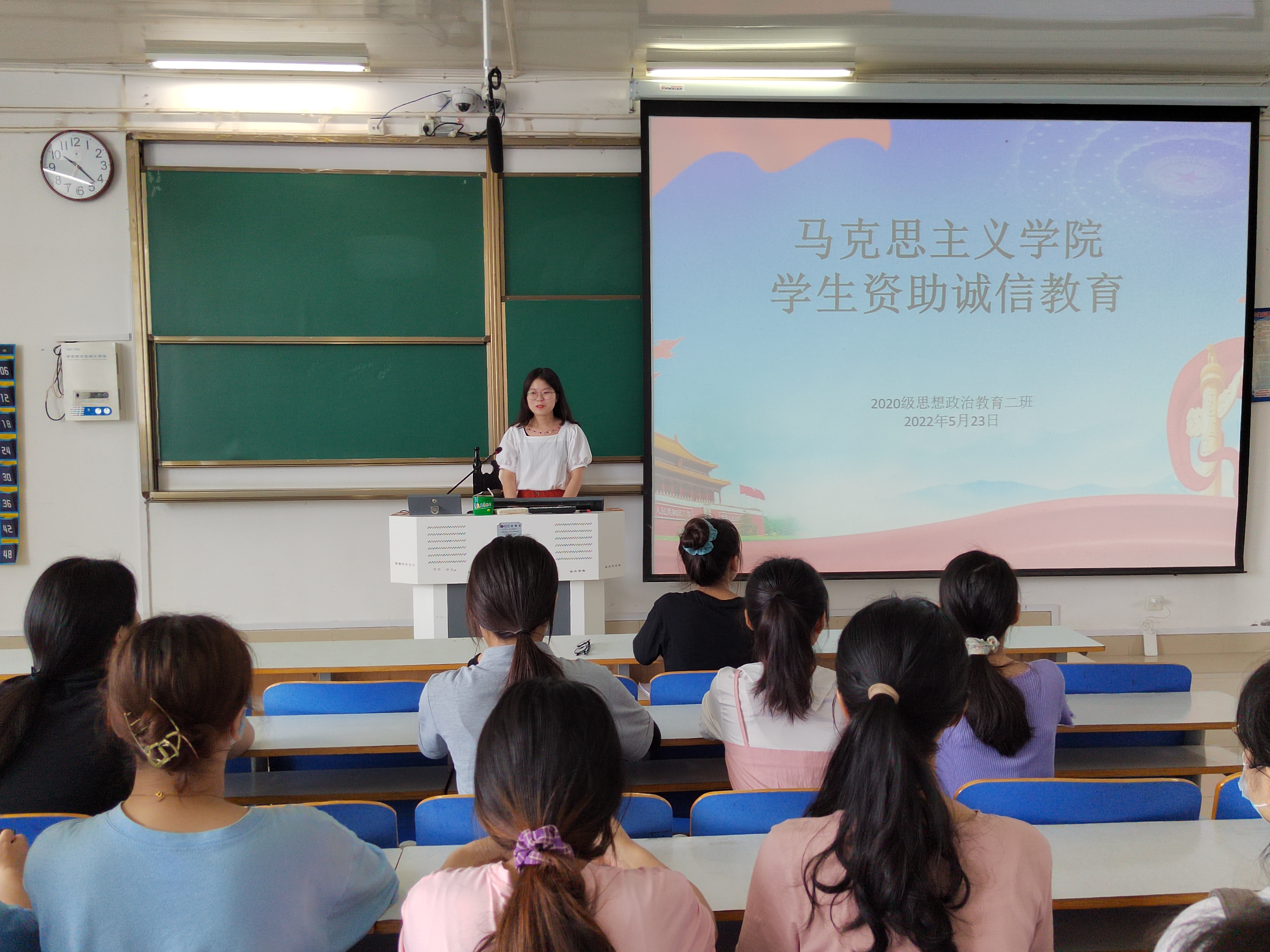 5月23日上午,sjb世俱杯网站2020级思想政治教育二班、定向二班在社科楼514教室召开学生资助诚信教育主题班会。辅导员高小佳及2020级思想政治教育二班、定向二班全体同学共同参会。班会由高小佳主持。