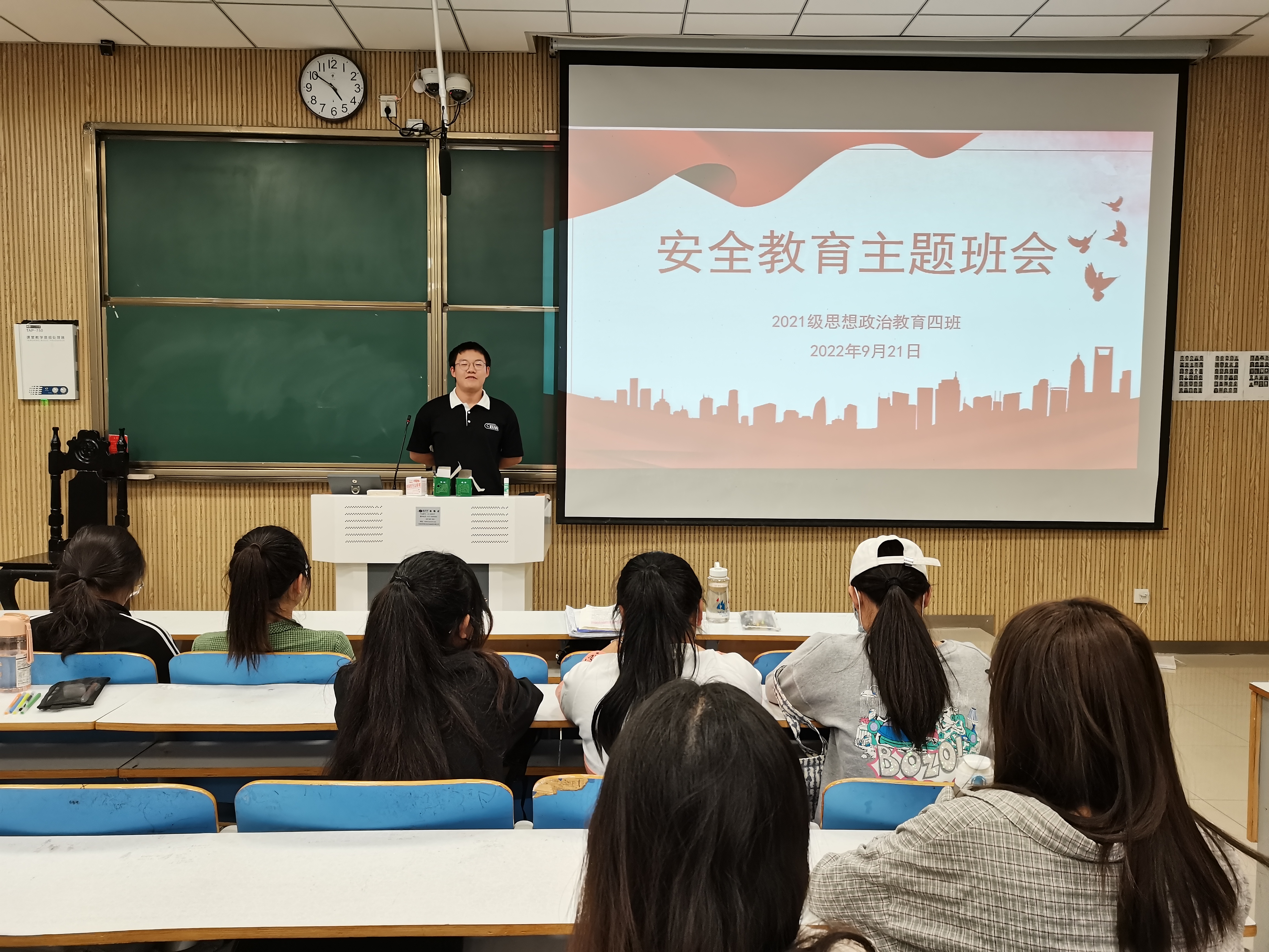9月21日下午,sjb世俱杯网站2021级思想政治教育四班在社科楼515教室开展安全教育主题班会。2021级思想政治教育四班全体同学共同参会。班会由副班长常康哲主