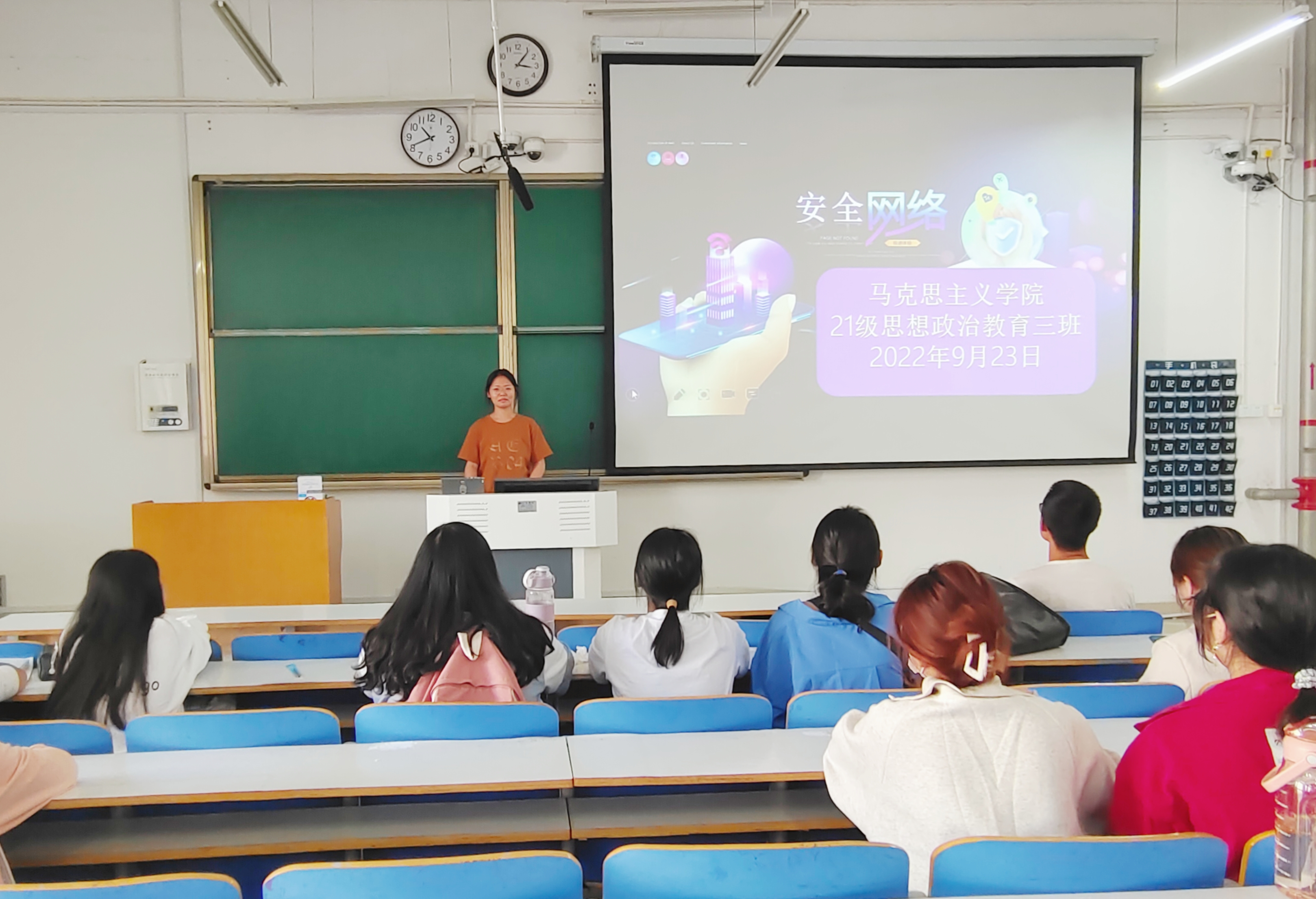 9月23日上午,sjb世俱杯网站2021级思想政治教育三班在社科楼514召开“提高安全意识 文明使用网络”主题班会。2021级思想政治教育三班全体成员参与此次会议。会议由心理委员许竞文主持。