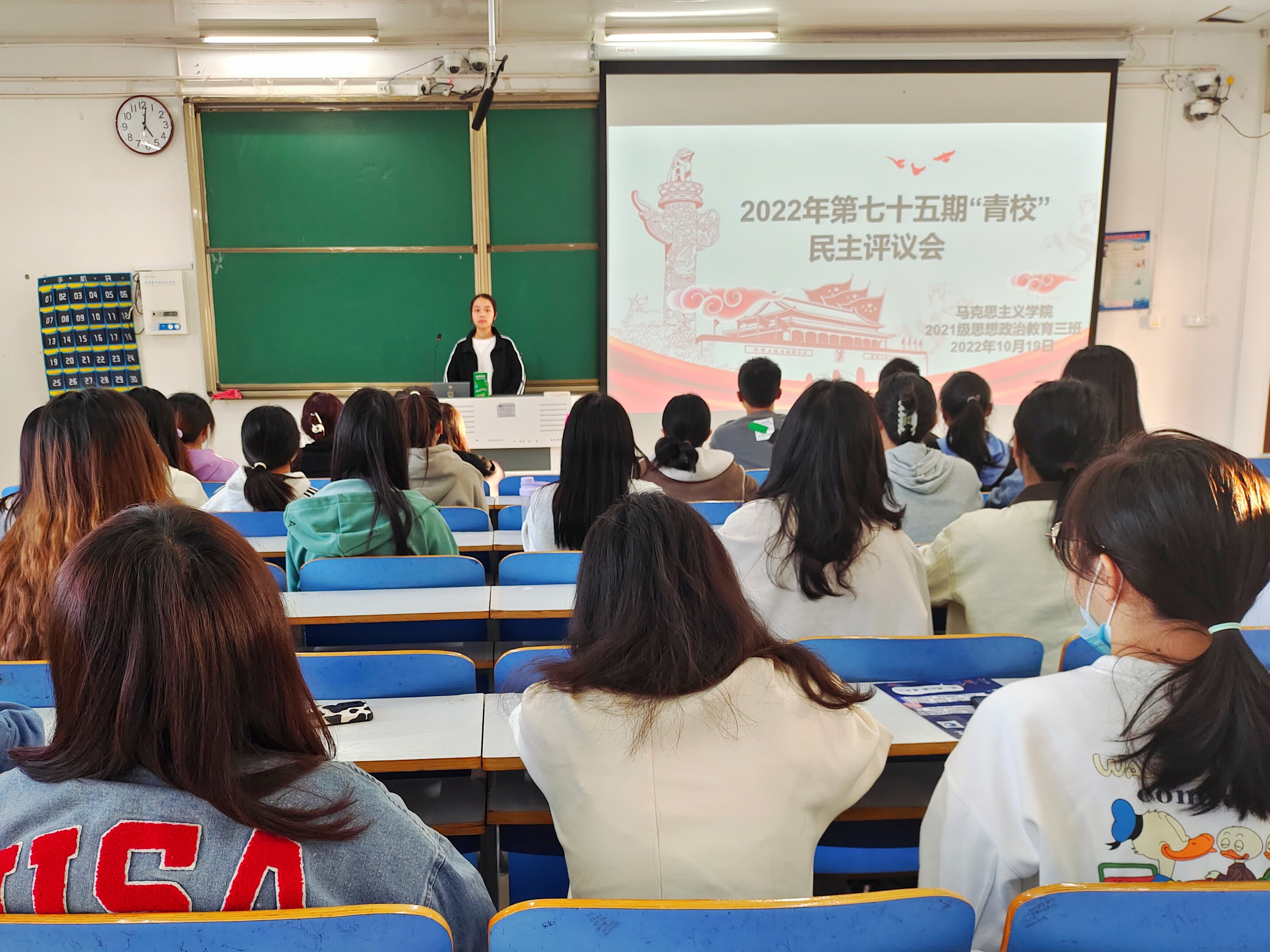 10月19日下午,sjb世俱杯网站2021级思想政治教育三班在社科楼514召开第七十五期“青校”成员推举团支部大会。sjb世俱杯网站2021级思想政治教育三班全体团员参与此次会议。会议由团支书王岚霄主持,秦梦莹担任监票员,陈笑宇担任记录员。