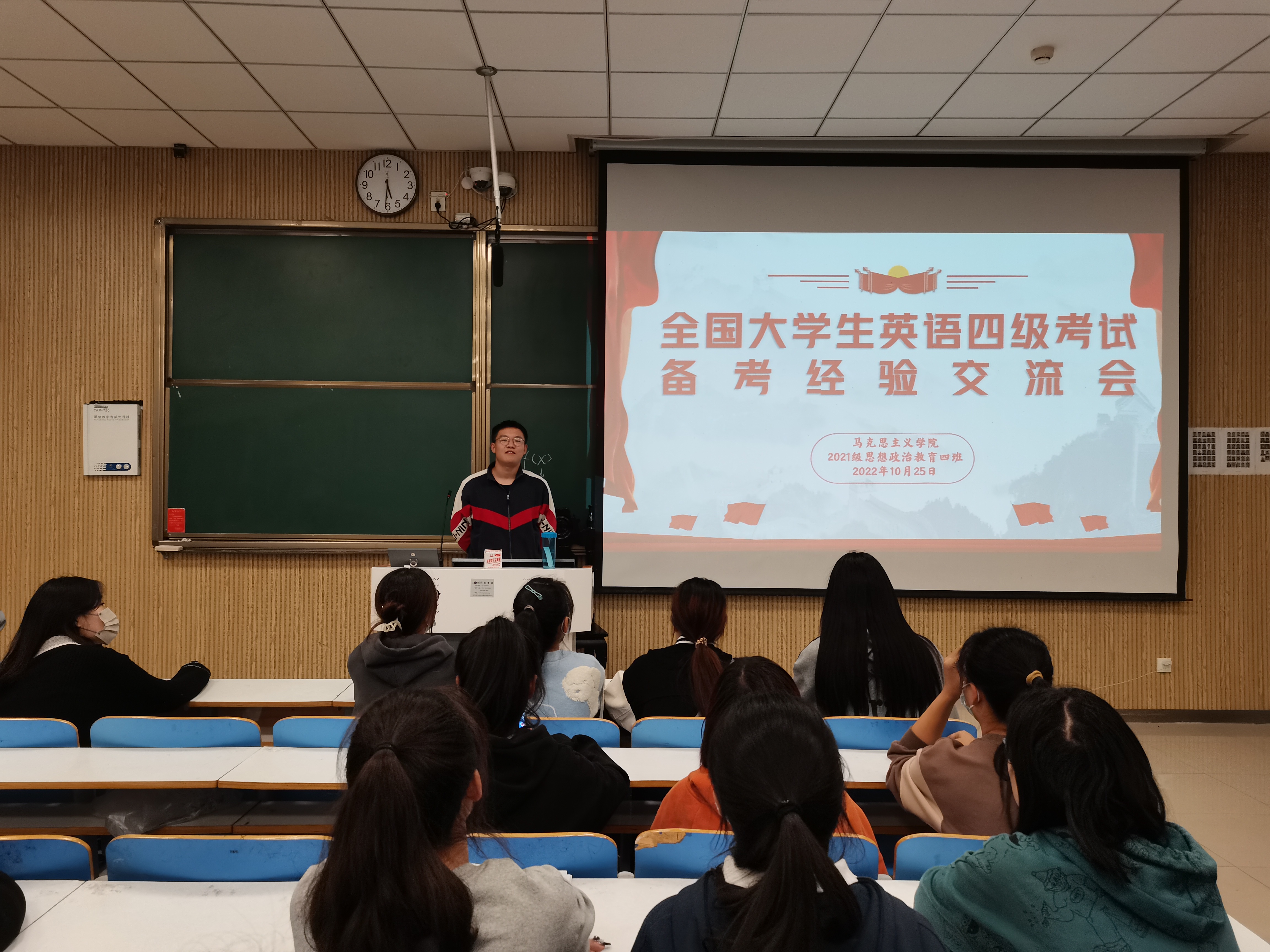为进一步提升我班同学备考热情,明晰备考规划,10月25日下午,sjb世俱杯网站2021级思想政治教育四班在社科楼514教室召开“全国大学生英语四级考试”备考经验交流会。2021级思想政治教育四班全体同学共同参会。班会由副班长常康哲主持。