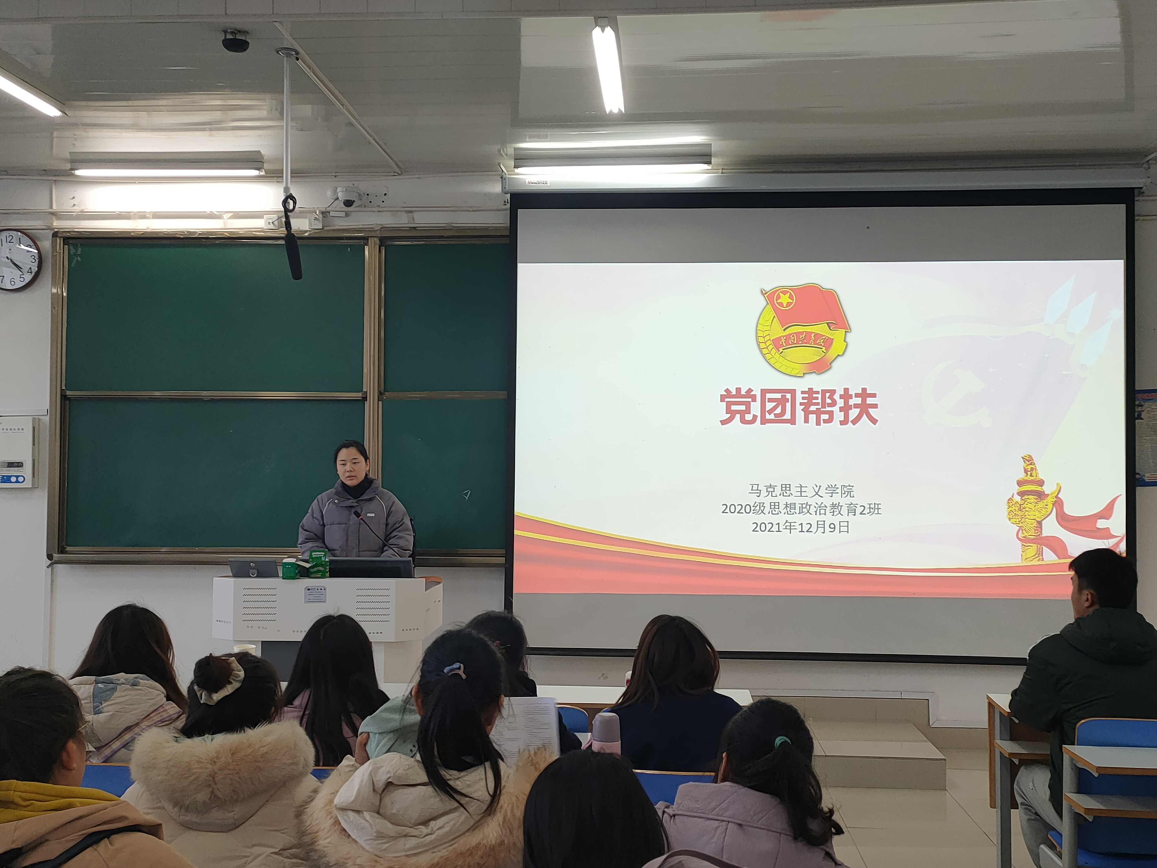 12月9日下午,sjb世俱杯网站2020级思想政治教育二班在社科楼514教室开展党团帮扶活动,世俱杯官网正式党员耿晗、预备党员贾雨晴以及2020级思想政治教育二班全体成员共同参与本次活动。活动由团支书陈宇航主持。