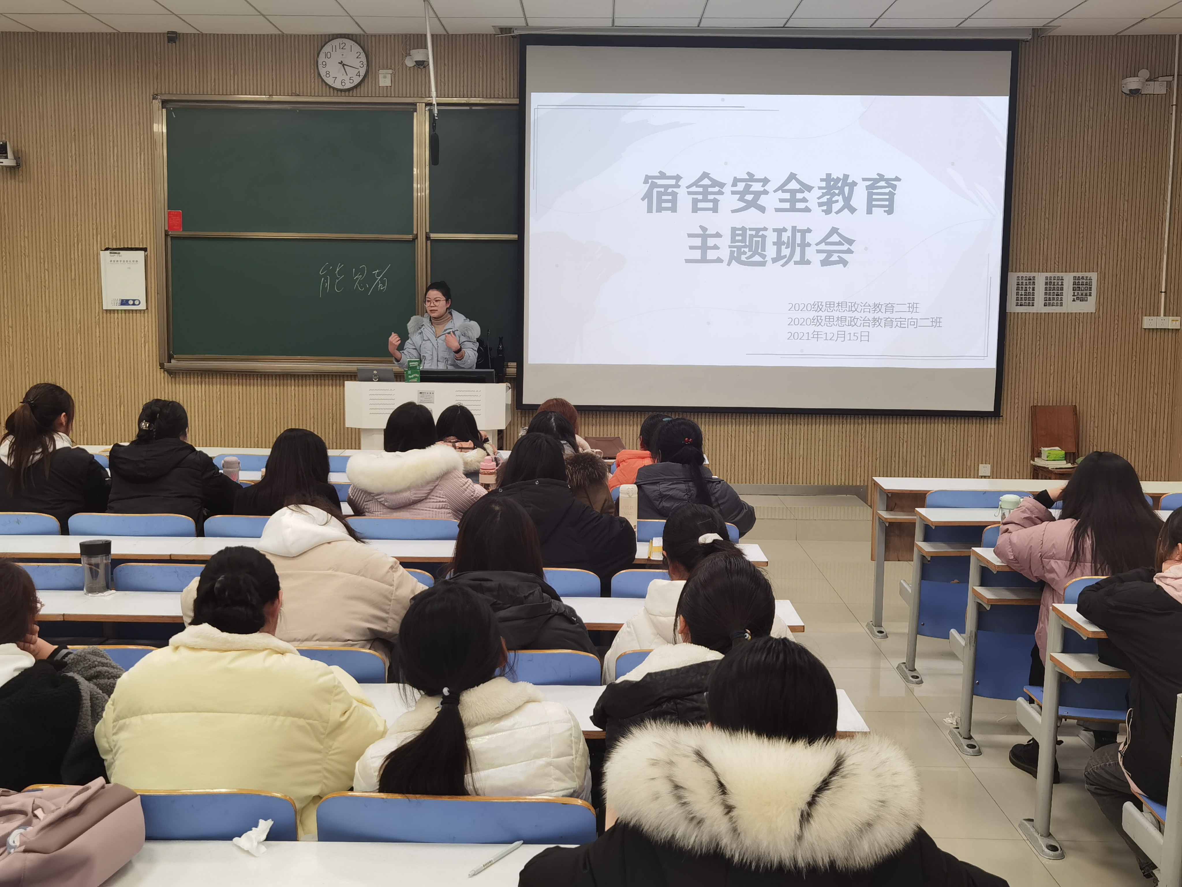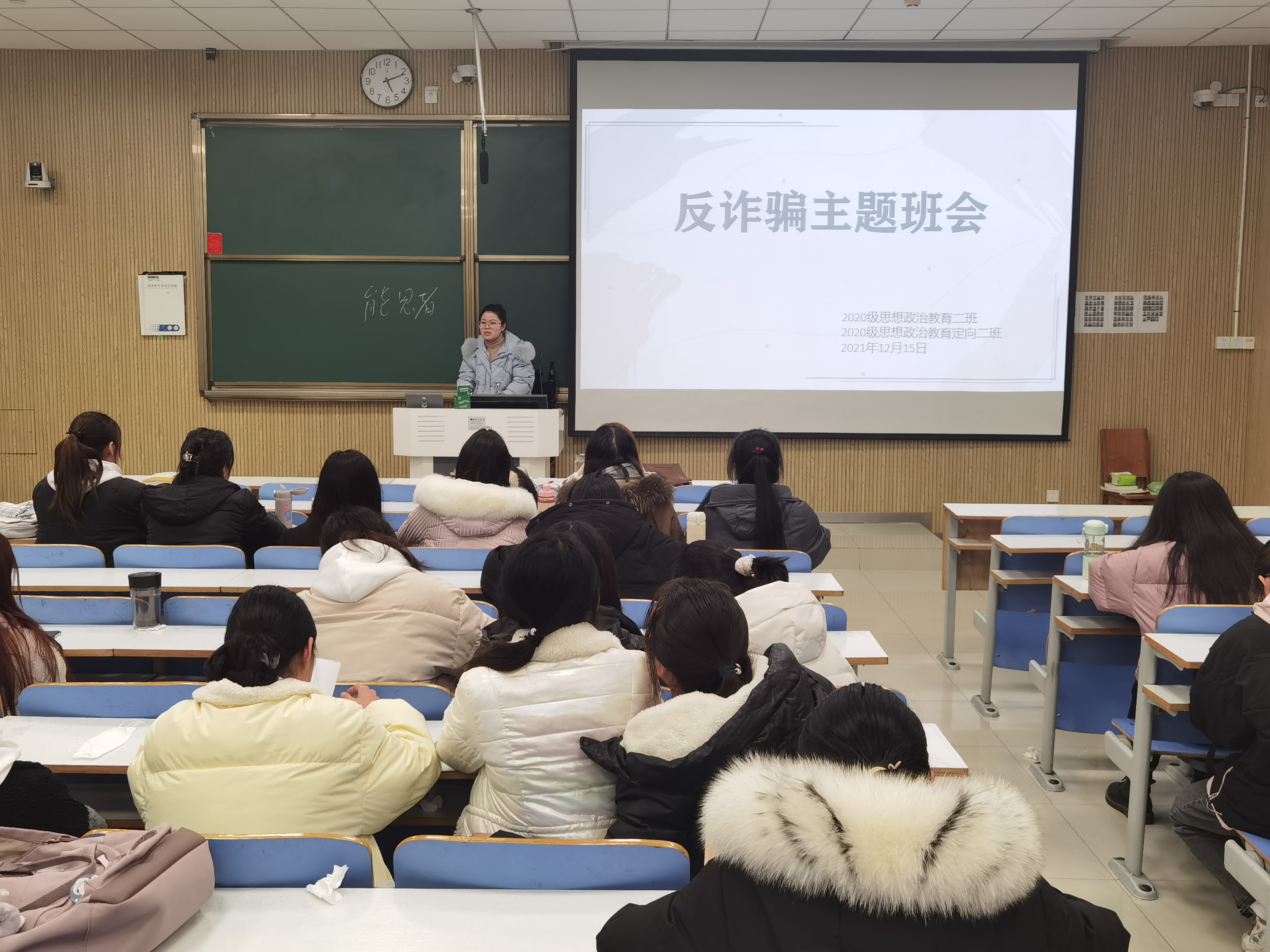 为提高学生的安全防范意识,切实保护学生的人身财产安全,12月15日下午,sjb世俱杯网站2020级思想政治教育二班、定向二班在社科楼515教室召开“反诈骗”和“宿舍安全”教育主题班会。辅导员高小佳及2020级思想政治教育二班、定向二班全体同学共同参与本次班会。班会由辅导员高小佳主持。