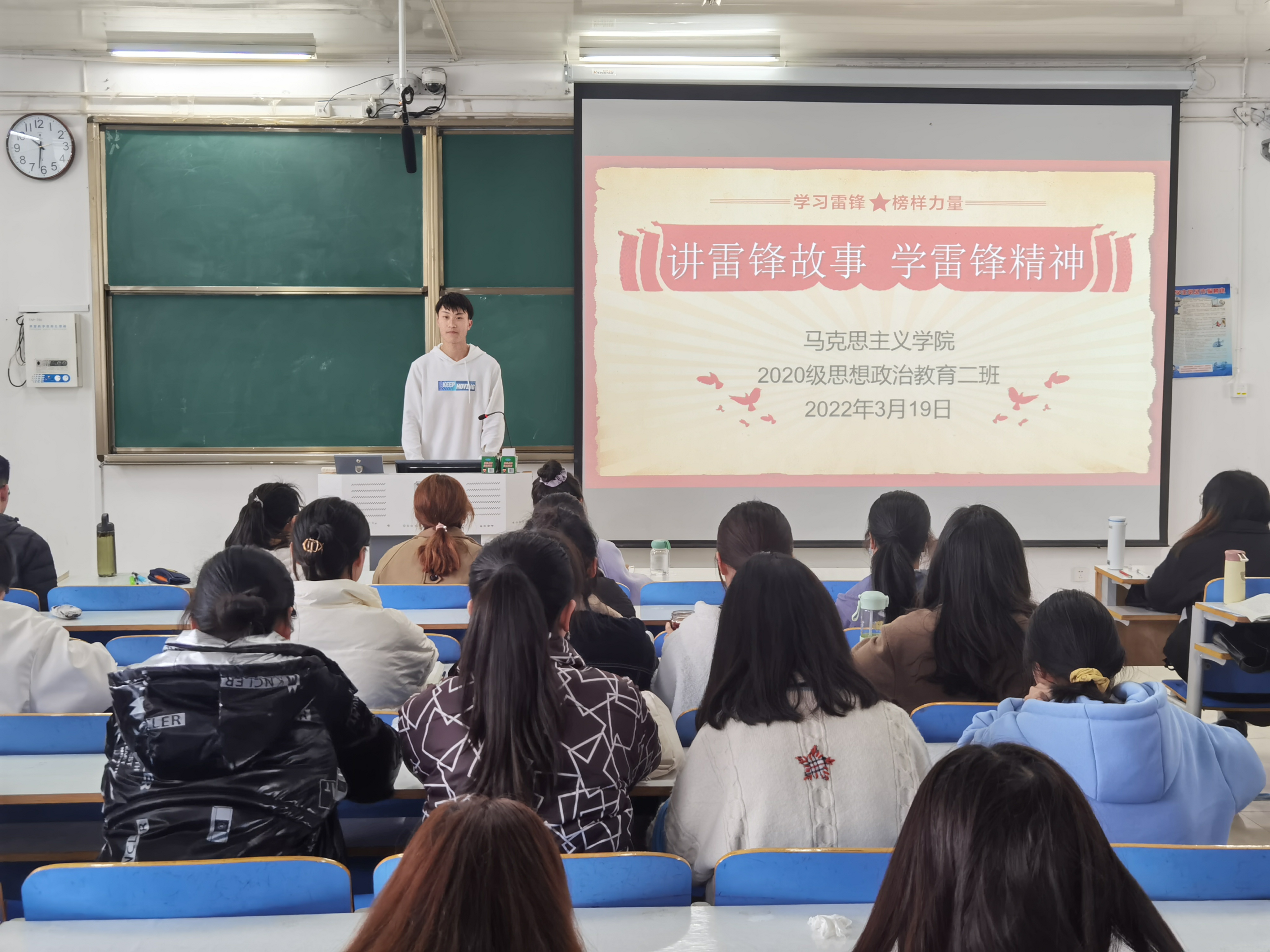 为了引导广大青年学生继承优良传统、弘扬志愿服务精神,3月19日上午,sjb世俱杯网站2020级思想政治教育二班、定向二班在社科楼514教室开展“讲雷锋故事,学雷锋精神”主题团课。2020级思想政治教育二班、定向二班全体团员共同参与本次团课。团课由团支书陈宇航主持。
