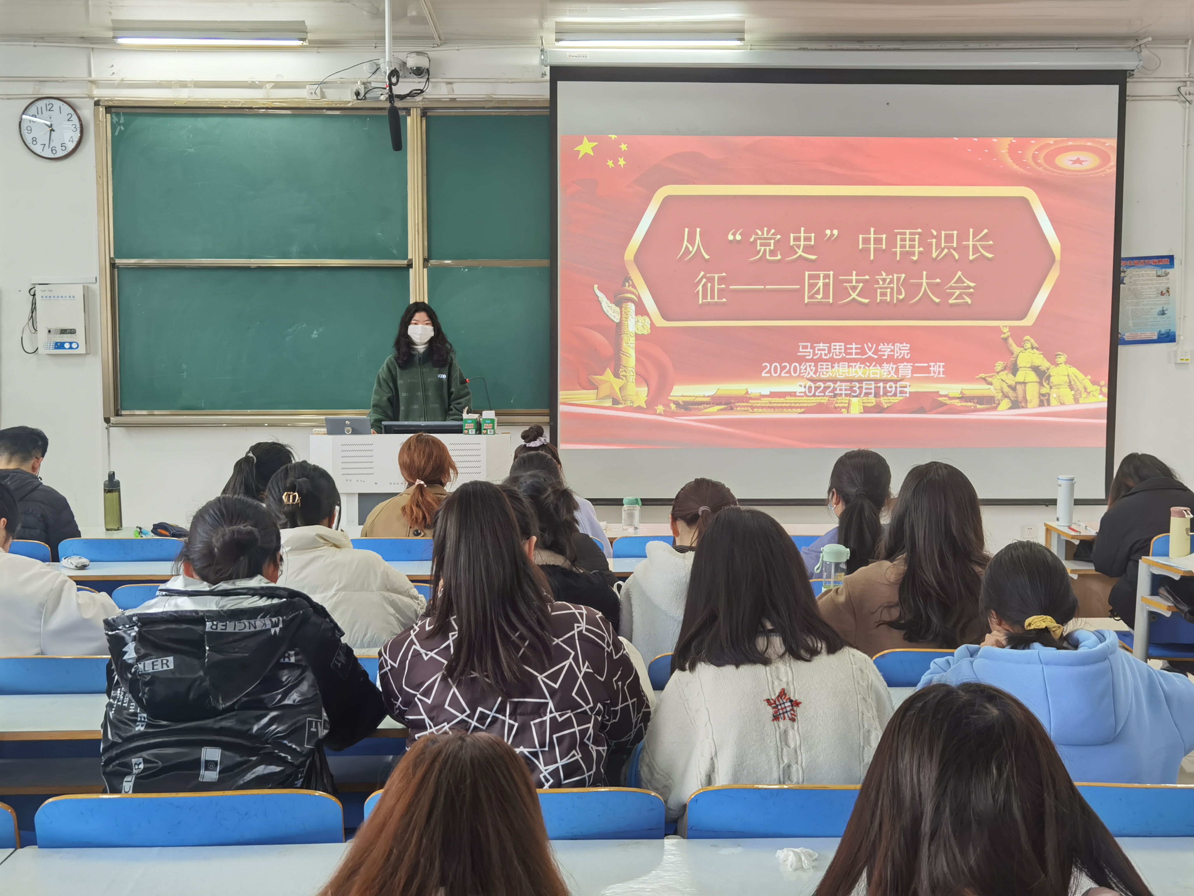 3月19日上午,sjb世俱杯网站2020级思想政治教育二班、定向二班在社科楼514教室召开“从党史中再识长征”团支部大会。2020级思想政治教育二班、定向二班全体团员共同参会。会议由团支书李晨曦主持。