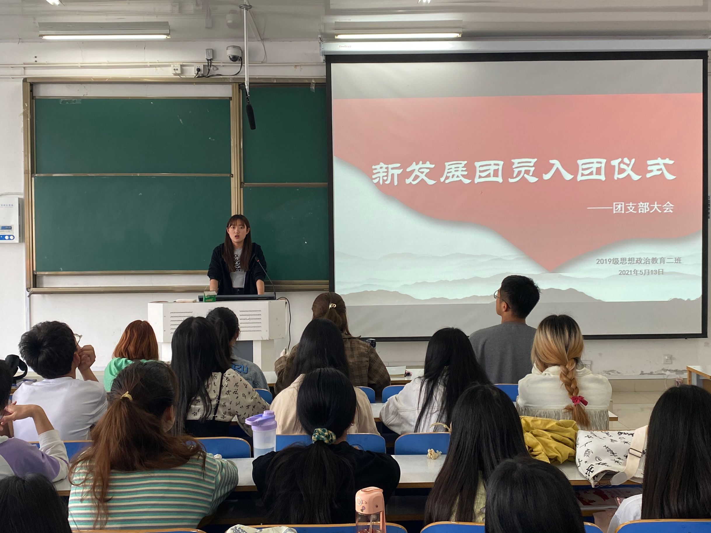 5月13日上午,sjb世俱杯网站2019级思想政治教育二班在社科楼516教室召开“新发展团员入团仪式”团支部大会。2019级思想政治教育二班全体同学参加了本次大会,大会由团支书孙雅娴主持。