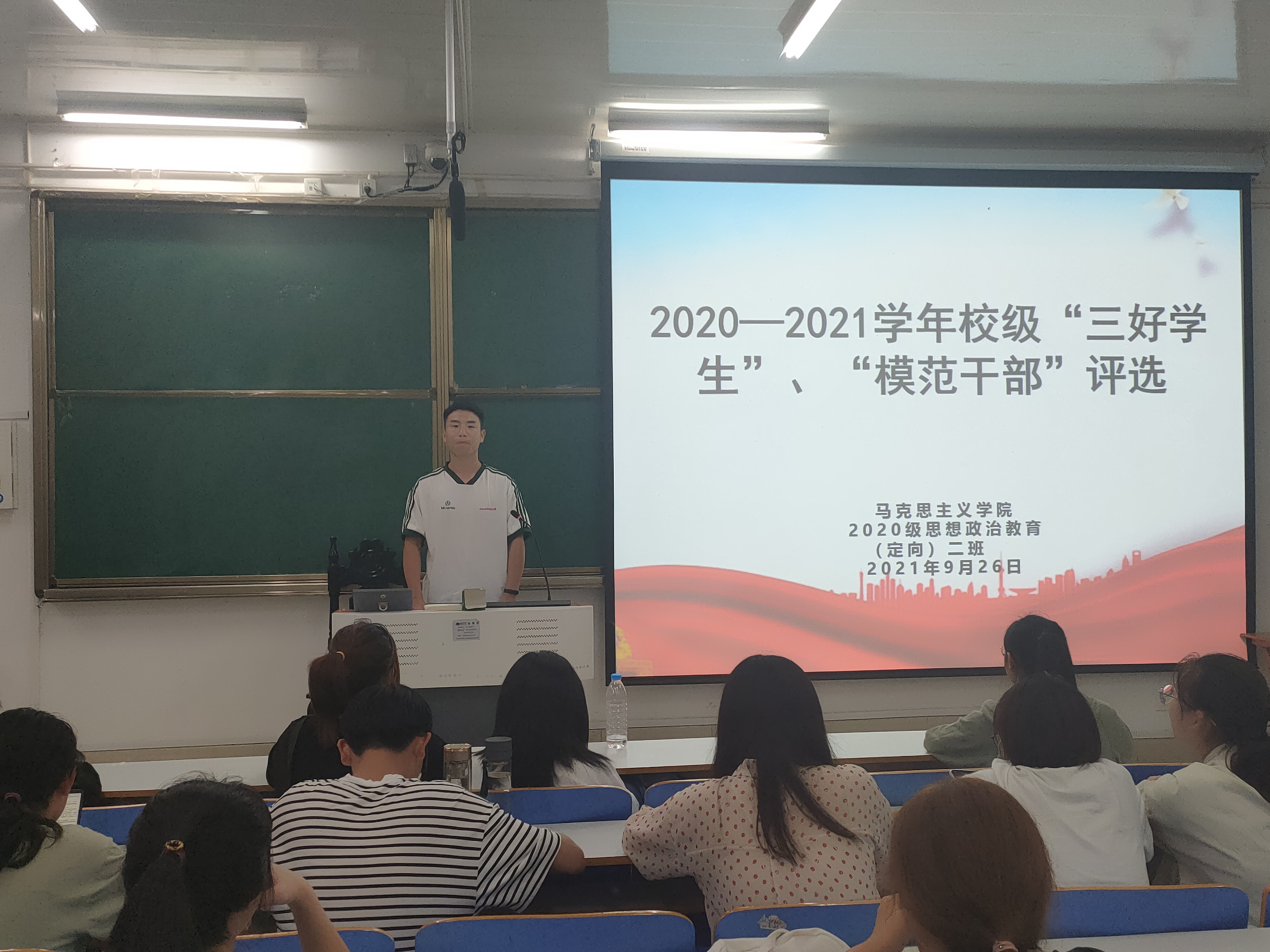 9月26日晚上,sjb世俱杯网站2020级思想政治教育定向二班“三好学生”“模范干部”评选会在社科楼514教室顺利召开。定向二班全体同学参与本次会议。