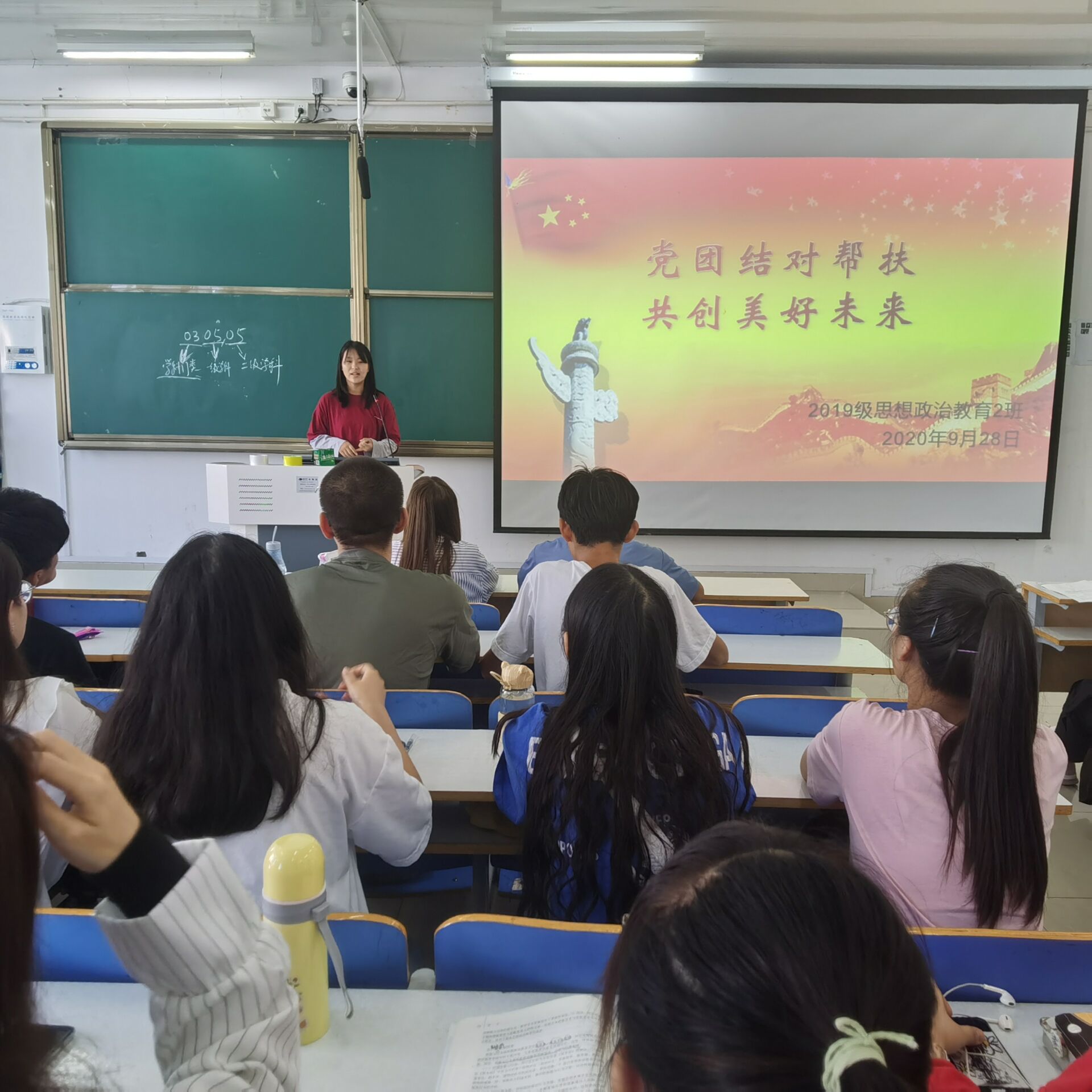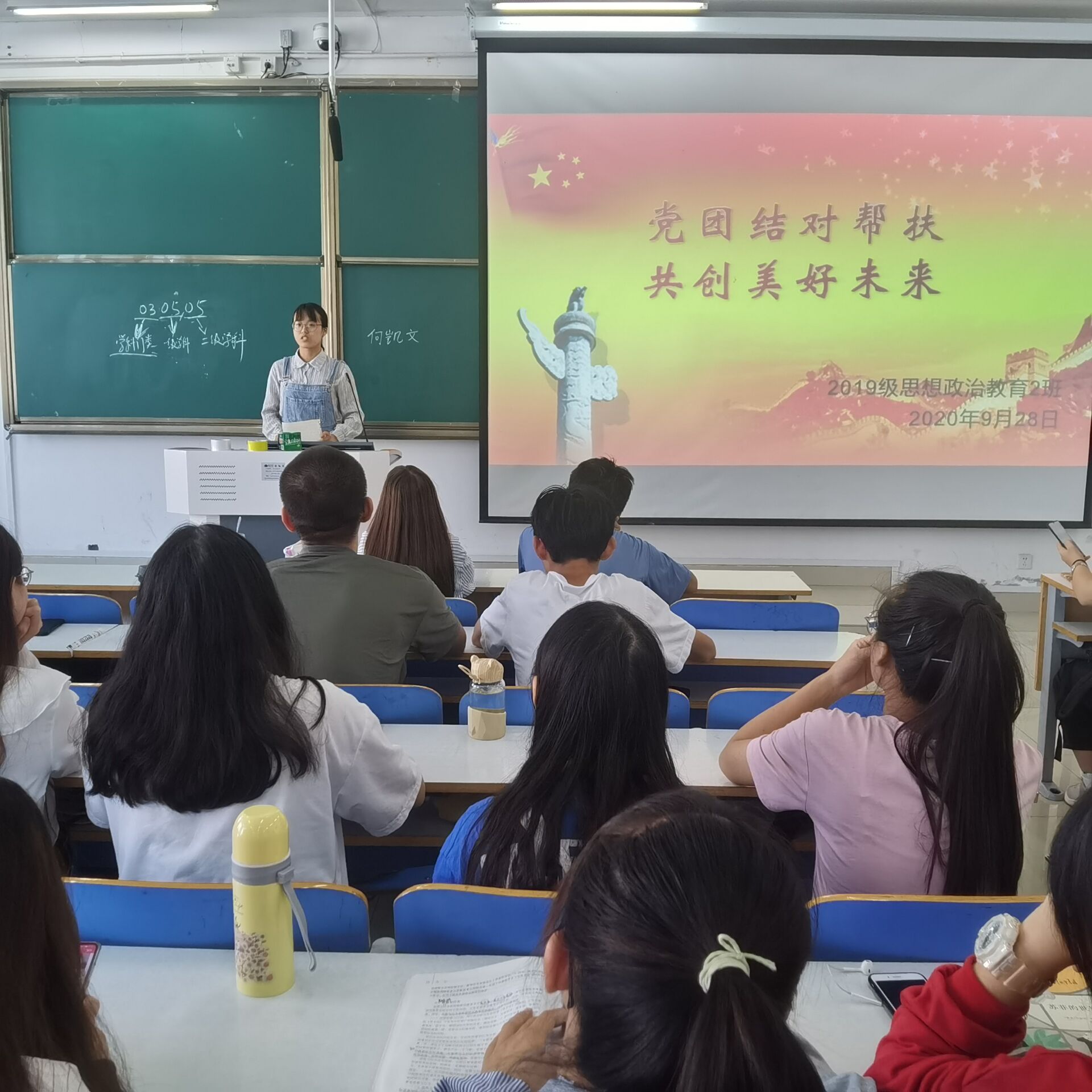 9月28日上午,sjb世俱杯网站2019级思想政治教育二班在社科楼516教室召开了“党团结对帮扶,共创美好未来”主题会议。世俱杯官网预备党员张晓艳、王文芳及2019级思想政治教育二班全体成员共同参会。会议由团支书孙雅娴主持。