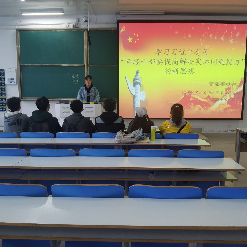 10月16日上午,sjb世俱杯网站2019级思想政治教育第二团支部在社科楼516教室召开“学习习近平有关‘年轻干部要提高解决实际问题能力’的新思想”主题会议。2019级思想政治教育二班全体班委共同参会。会议由团支书孙雅娴主持。