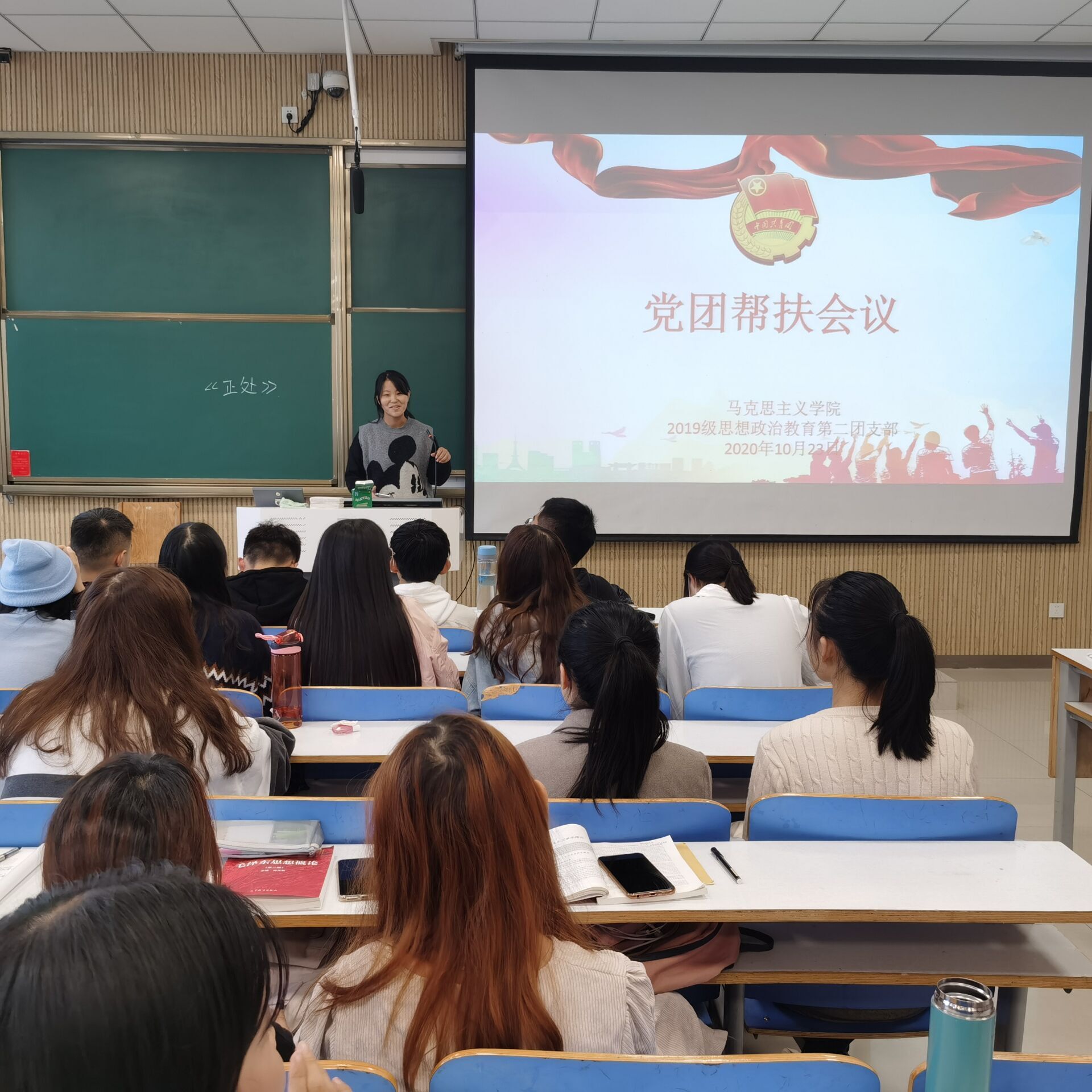 10月23日下午,sjb世俱杯网站2019级思想政治教育二班在社科楼515教室召开党团帮扶会议。世俱杯官网预备党员王文芳、张晓艳及2019级思想政治教育二班全体成员共同参会。会议由团支书孙雅娴主持。
