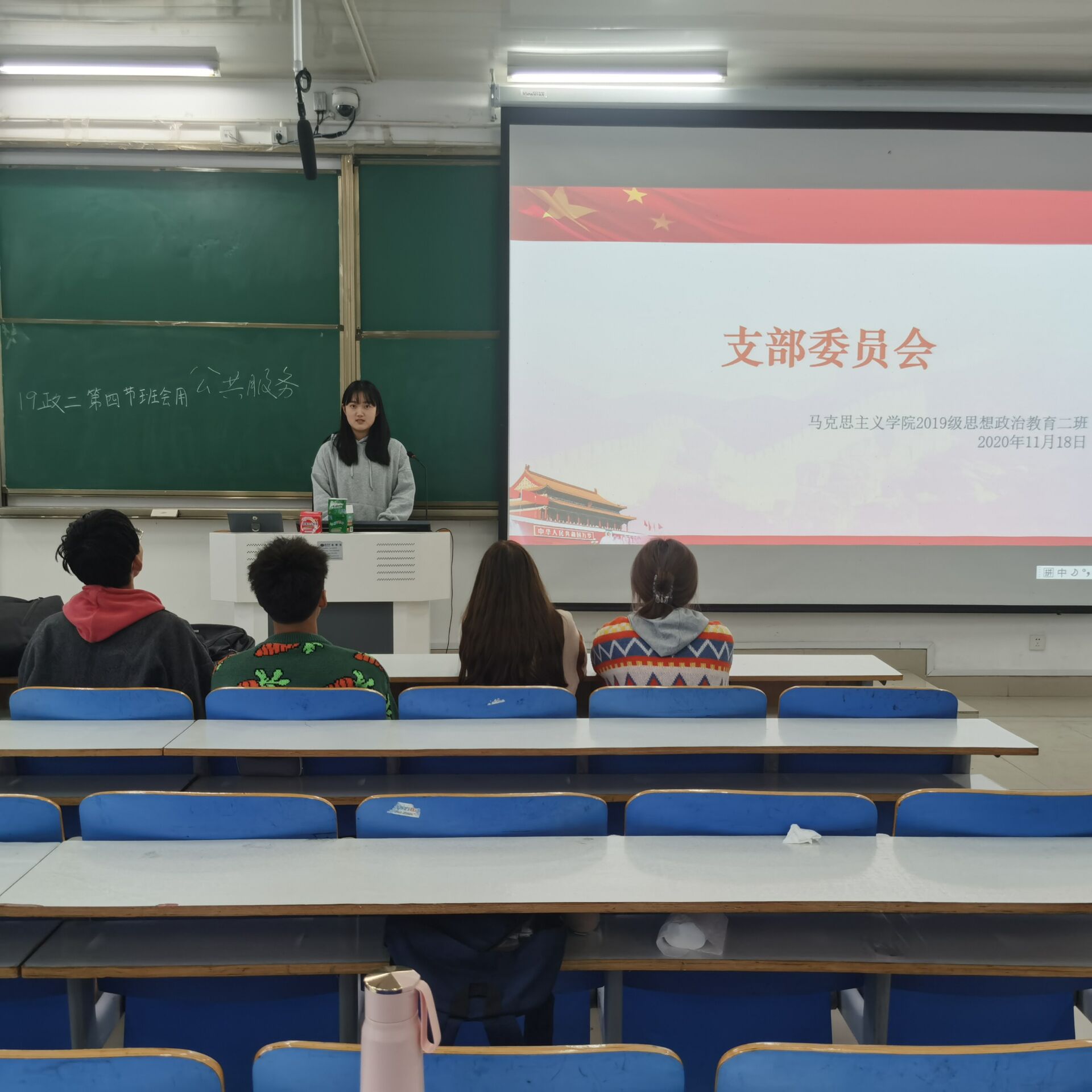 11月18日下午,sjb世俱杯网站2019级思想政治教育二班在社科楼514教室召开“学习与贯彻党的十九届五中全会精神”支部委员会。sjb世俱杯网站2019级思想政治教育二班全体成员共同参会。会议由团支书孙雅娴主持。