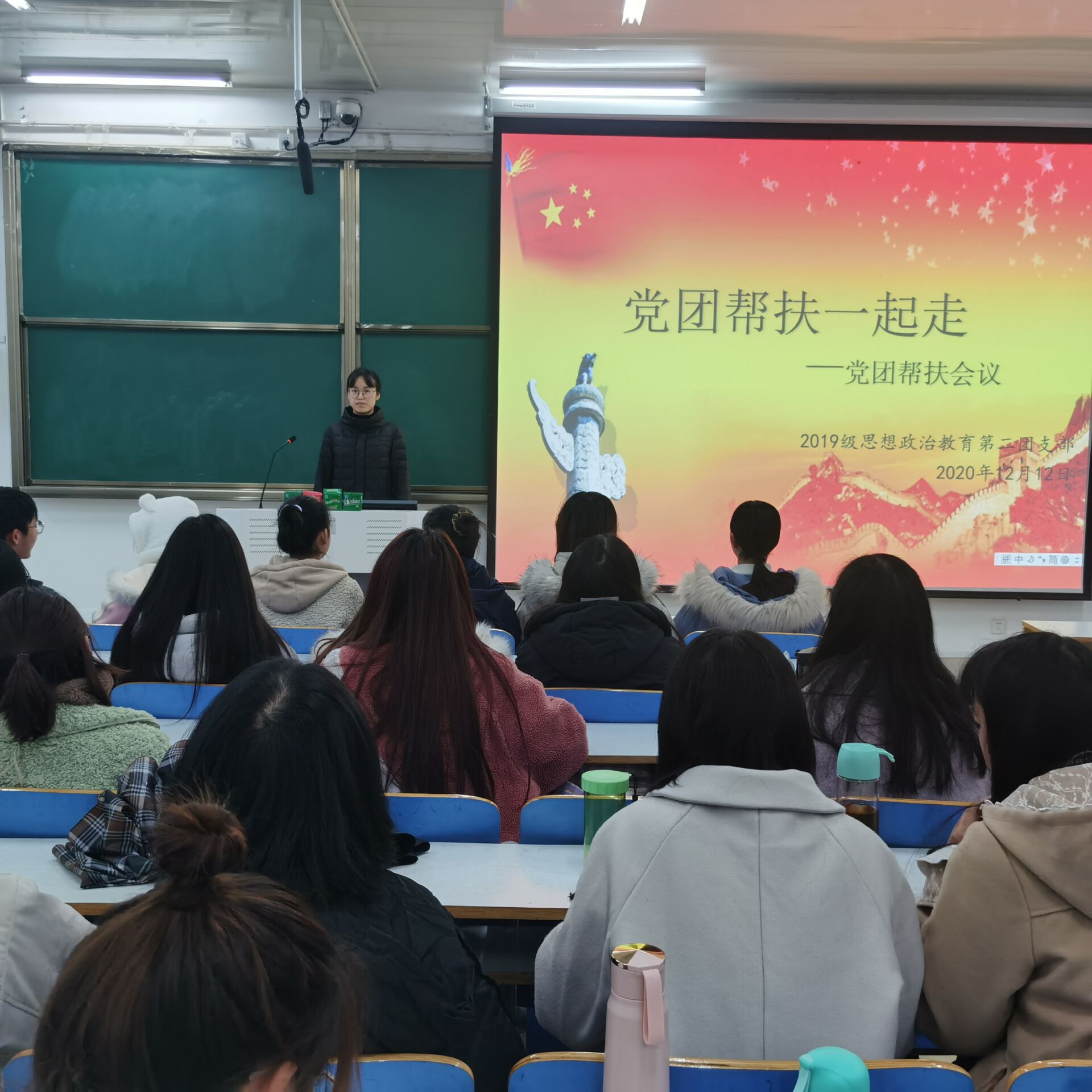 12月12日下午,sjb世俱杯网站2019级思想政治教育二班于社科楼515教室召开党团帮扶会议。世俱杯官网预备党员王文芳、张晓艳及2019级思想政治教育二班全体成员共同参会。会议由团支书孙雅娴主持。