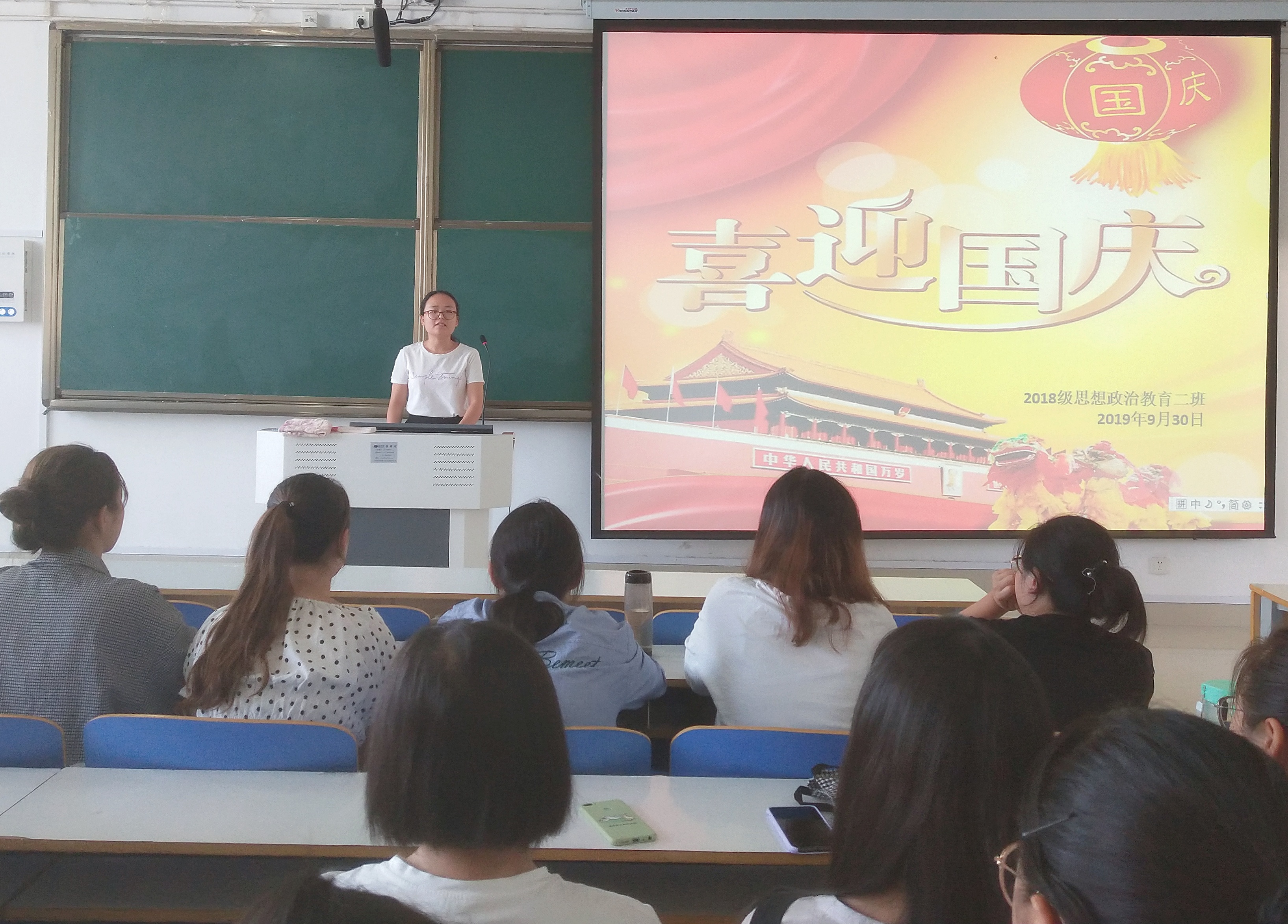 9月30日上午,世俱杯官网2018级思想政治教育二班在社科楼514教室开展了“喜迎祖国七十华诞”主题班会。辅导员曹菁菁、2018级思想政治教育二班全体成员共同参加了本次班会。班会由班长杨康主持。