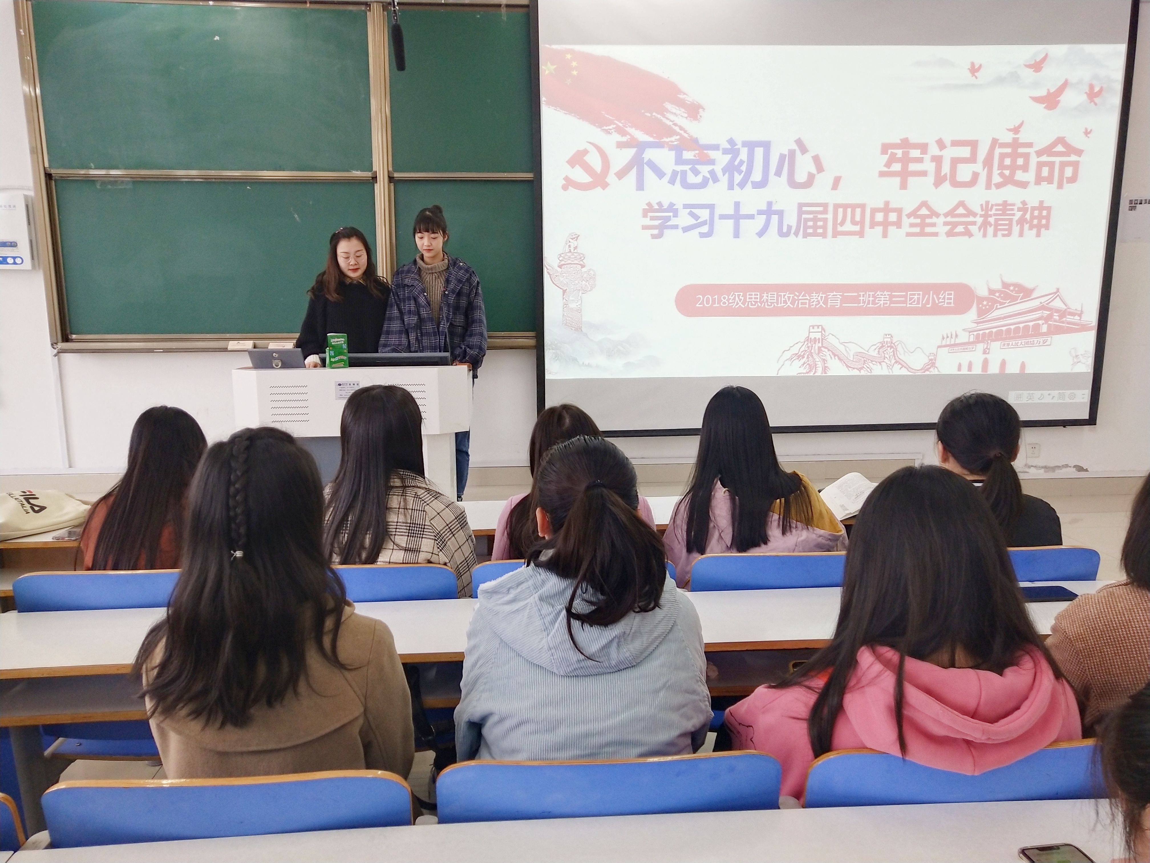 11月21日上午,世俱杯官网2018级思想政治教育第二团支部第三团小组在社科楼516教室顺利开展了主题为“学习十九届四中全会精神”团小组会。会议由团小组成员铁兰欣主持。