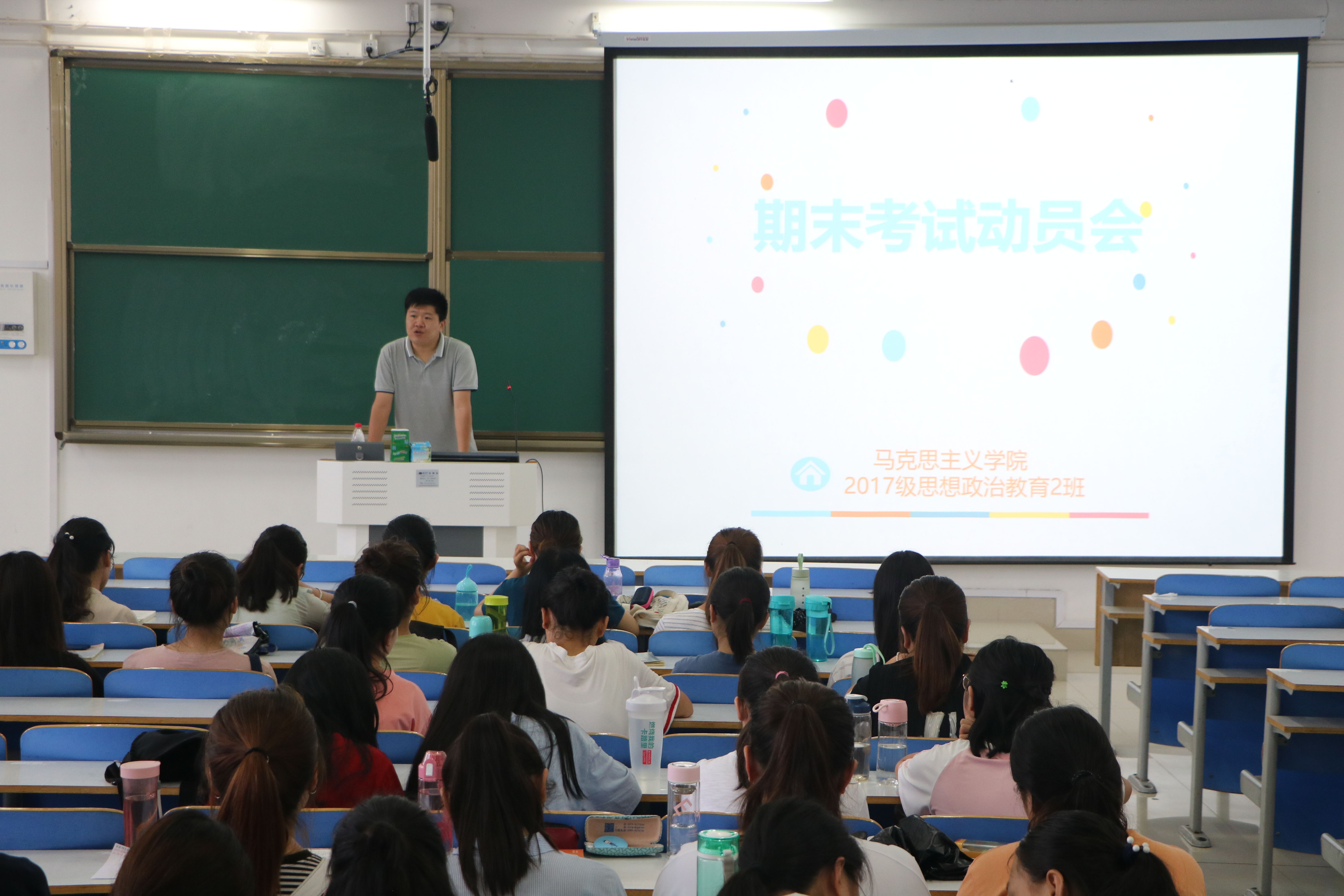 6月21日上午,sjb世俱杯网站2017级思想政治教育二班在社科楼514教室召开期末考试动员会,班级辅导员孙绪曙及2017级思想政治教育二班全体成员参加本次会议,会议由班长艾子元主持。