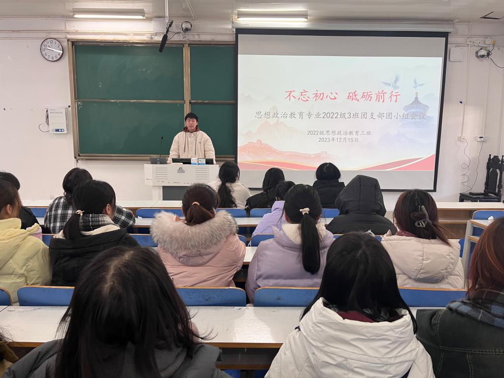 12月15日下午,sjb世俱杯网站2022级思想政治教育三班在社科楼514教室召开“不忘初心,砥砺前行”主题班会。世俱杯官网2022级思想政治教育三班全体成员共同参加此次班会。班会由班长余浩洋主持。