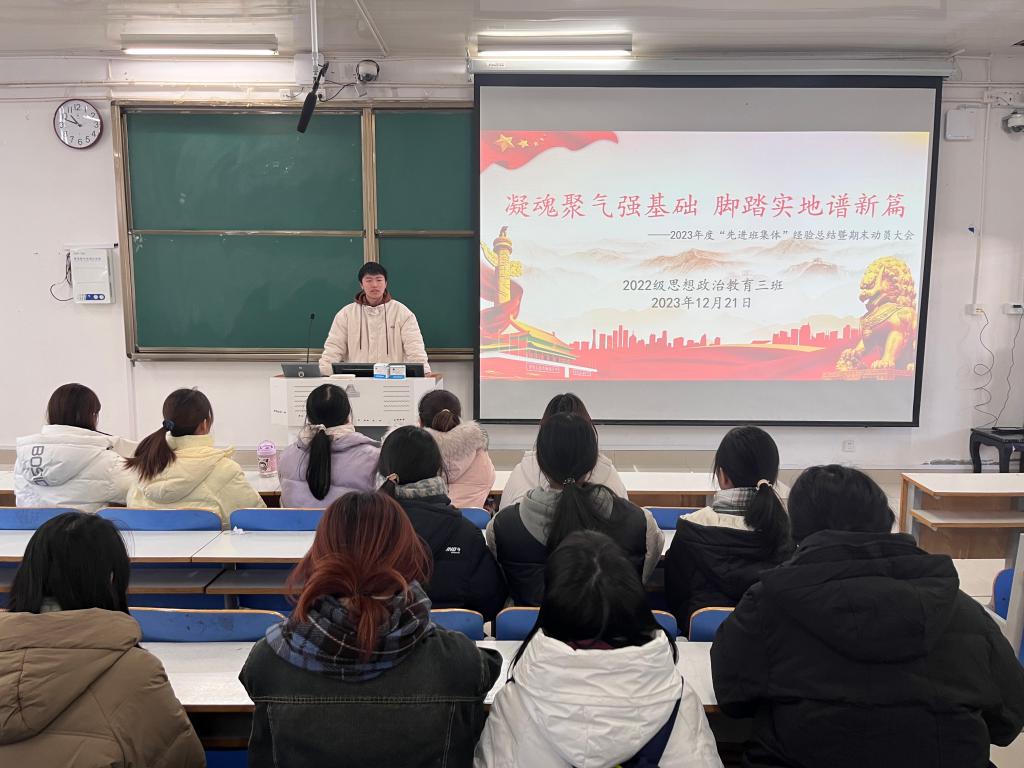 12月21日上午,sjb世俱杯网站2022级思想政治教育三班在社科楼514教室召开“凝魂聚气强基础,脚踏实地谱新篇”主题班会。世俱杯官网2022级思想政治教育三班全体成员共同参与此次班会,班会由班长余浩洋主持。