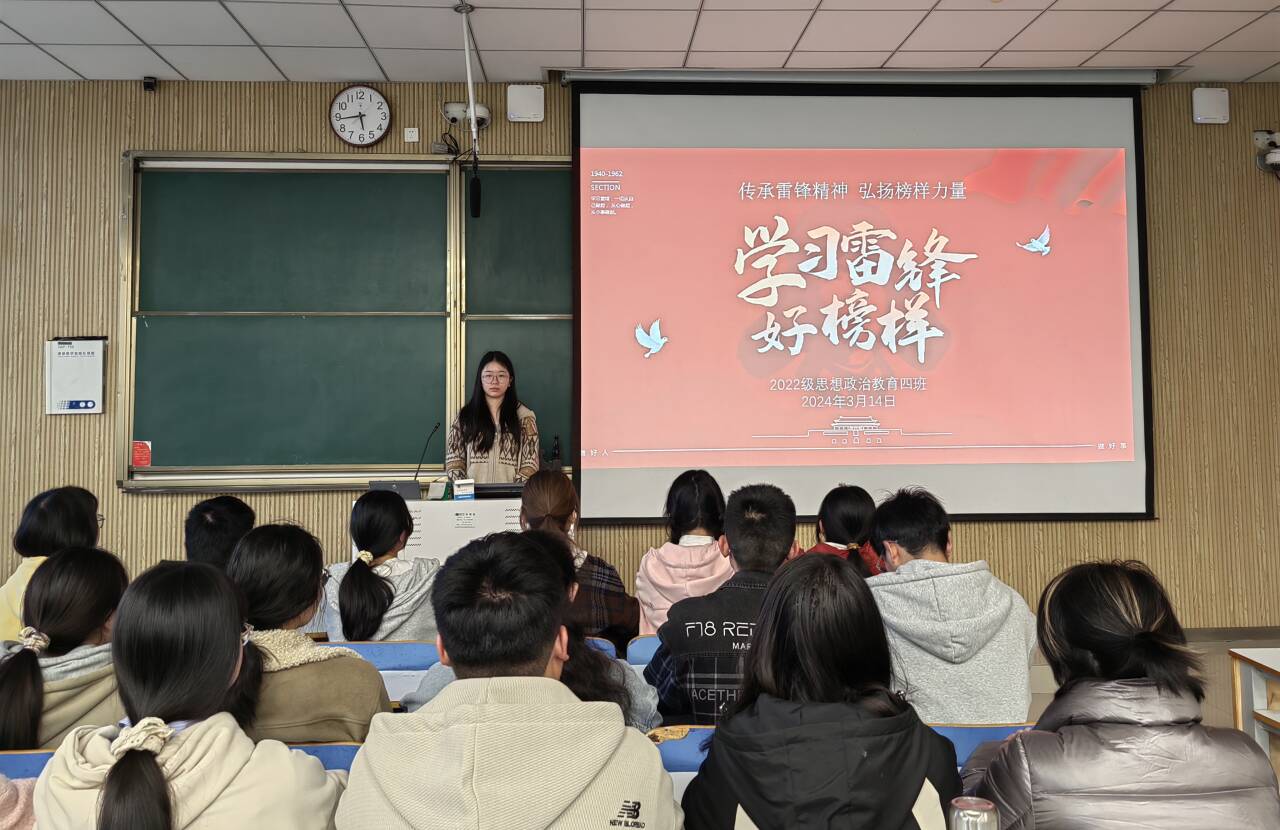 为深入学习贯彻习近平总书记对开展学雷锋活动的重要指示精神,深刻把握雷锋精神的时代内涵,3月14日上午,sjb世俱杯网站2022级思想政治教育四班在社科楼515教室组织召开“传承雷锋精神,弘扬榜样力量”主题班会。世俱杯官网2022级思想政治教育四班全体成员参与本次班会。本次会议由班长牛志杰主持。