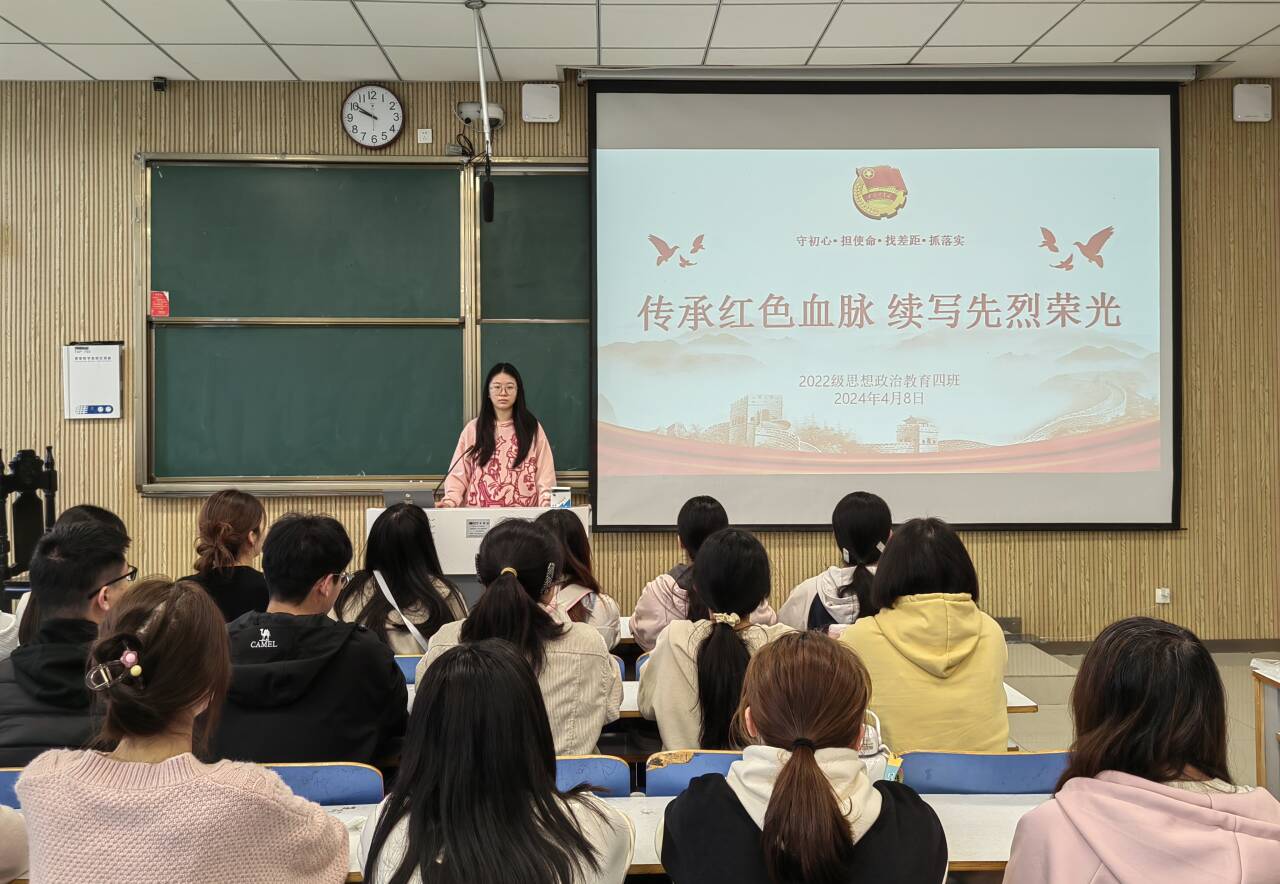 4月8日上午,sjb世俱杯网站2022级思想政治教育四班在社科楼515教室组织召开“传承红色血脉,续写先烈荣光”主题团课。世俱杯官网2022级思想政治教育四班全体成员参与本次团课。本次团课由团支书牛志杰主持。