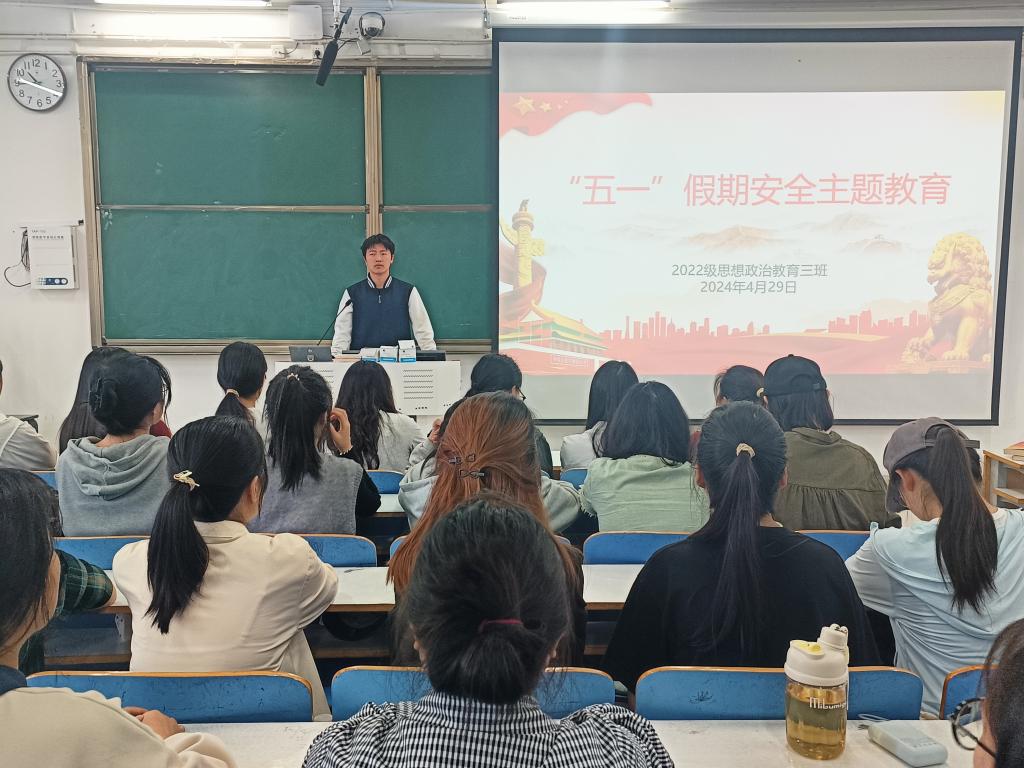 为做好假期安全防护工作,确保每位学生能度过一个安全、愉快的假期,4月29日上午,sjb世俱杯网站2022级思想政治教育三班在社科楼514教室召开“五一”假期安全主题教育班会。世俱杯官网2022级思想政治教育三班全体成员共同参与此次班会。班会由班长余浩洋主持。