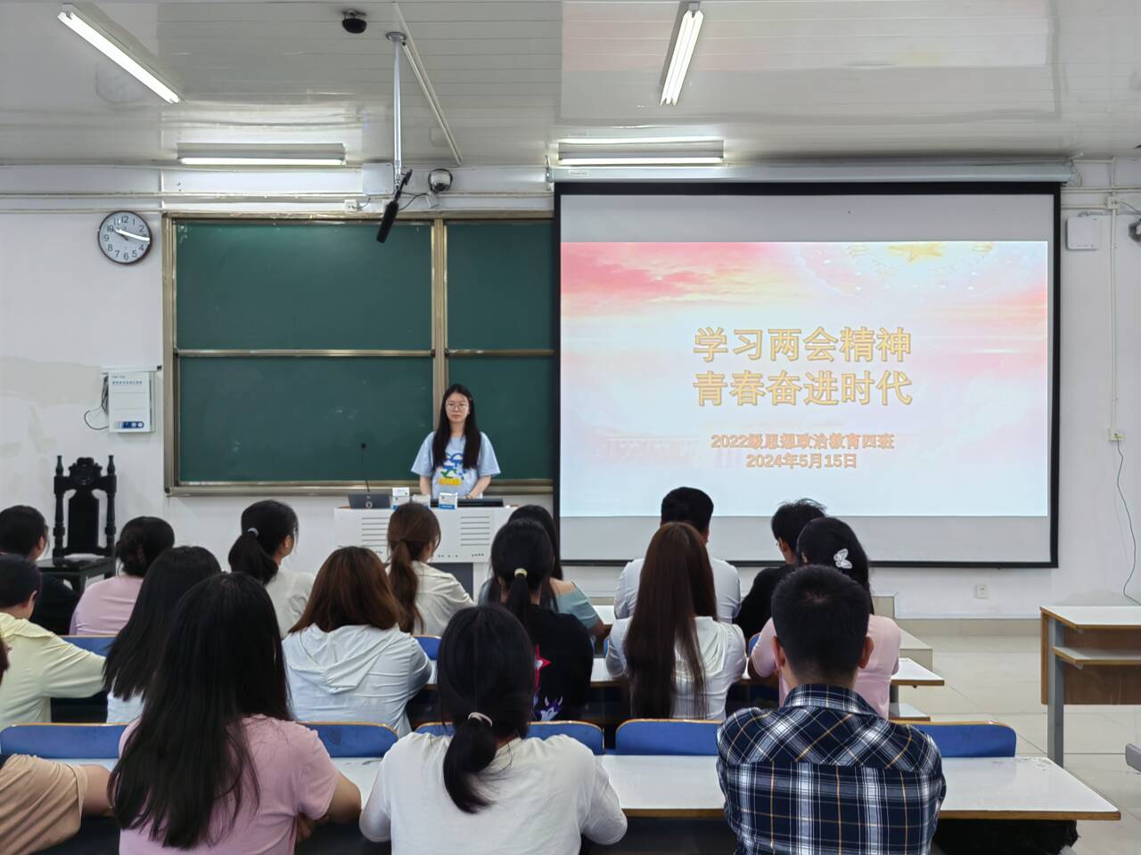 为深入学习“两会”精神,提升同学们的政治素养和时代责任感,5月15日上午,sjb世俱杯网站2022级思想政治教育四班在社科楼514教室组织召开“学习两会精神,青春奋进时代”主题团课。世俱杯官网2022级思想政治教育四班全体成员参与本次团课。本次团课由团支书牛志杰主持。