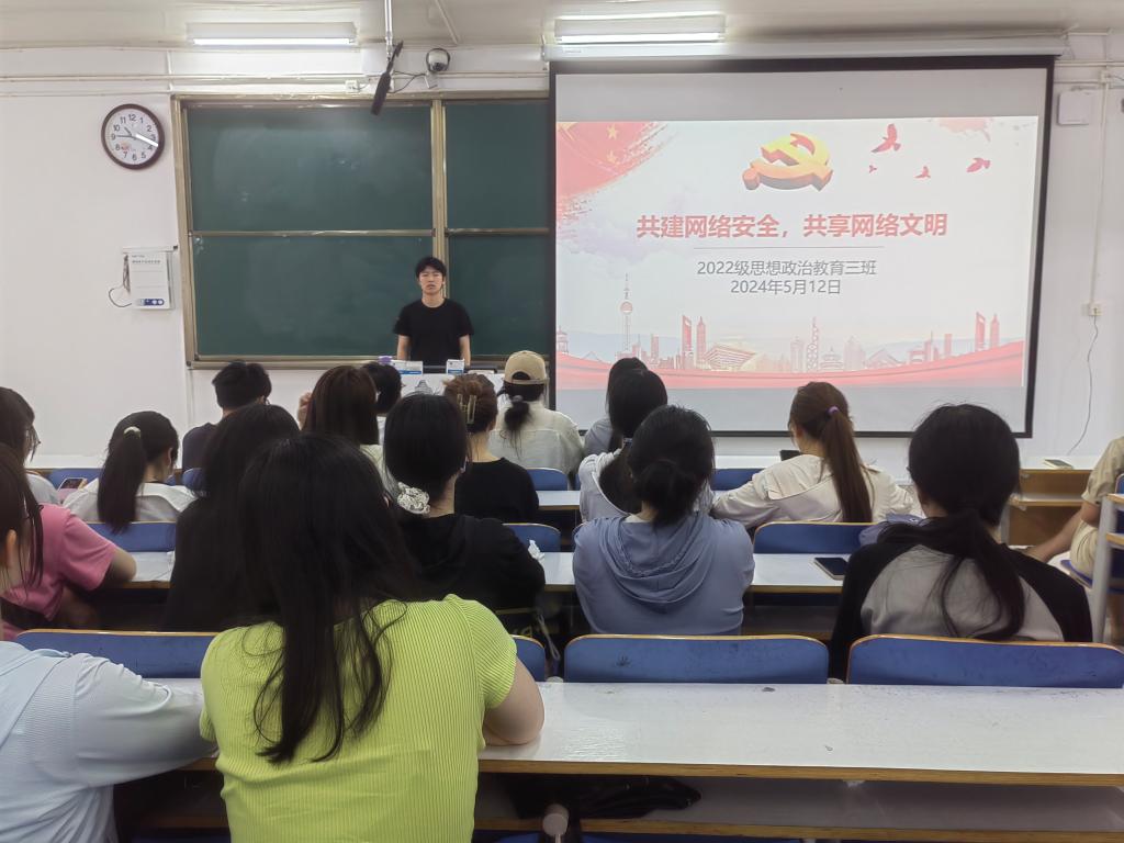 5月12日上午,sjb世俱杯网站2022级思想政治教育三班在社科楼514教室召开“共建网络安全,共享网络文明”主题团课。世俱杯官网2022级思想政治教育三班全体成员共同参与本次团课。团课由团支书余浩洋主持。