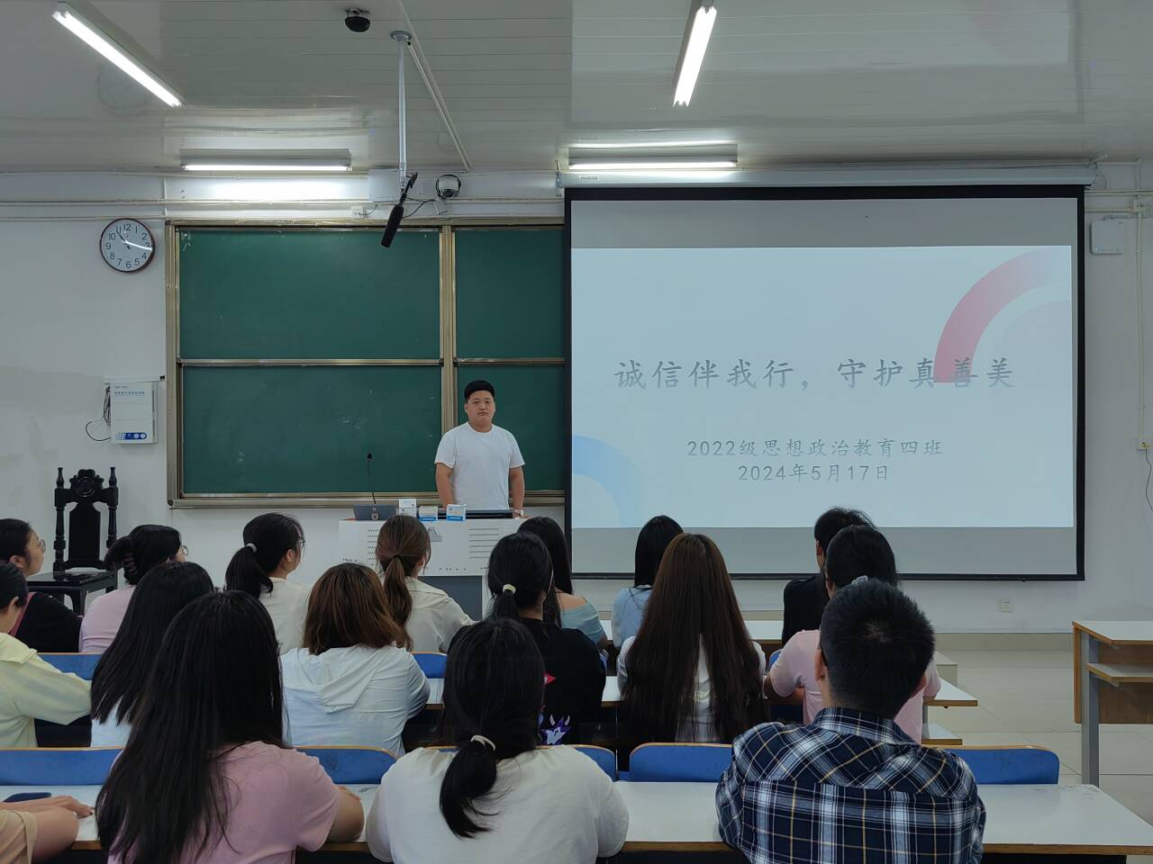 为进一步加强学生道德修养,增强学生诚信意识,在校园形成讲诚信、树诚信、践诚信的良好风气,5月17日上午,sjb世俱杯网站2022级思想政治教育四班在社科楼514教室组织召开“诚信伴我行,守护真善美”主题班会。世俱杯官网2022级思想政治教育四班全体成员参与本次班会。本次团课由副班长宋奕铭主持。
