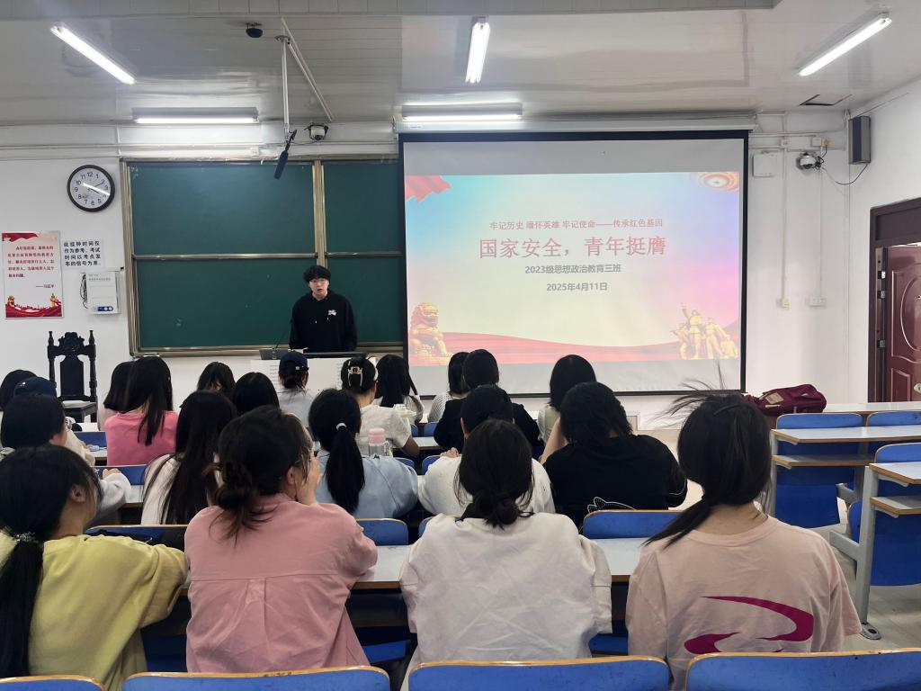 4月11日上午,sjb世俱杯网站2023级思想政治教育三班在社科楼515召开“国家安全,青年挺膺”主题团课。世俱杯官网2023级思想政治教育三班全体同学共同参与本次团课,团课由团支书郝瀚主持。