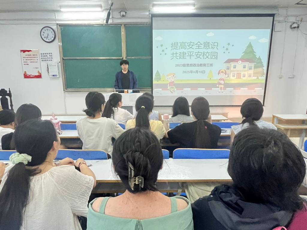 为深入贯彻落实安全生产方针政策,切实强化班级同学的安全责任意识,6月10日下午,sjb世俱杯网站2023级思想政治教育专业班在社科楼515教室开展“2025年安全生产月”主题班会。班会由班长郝瀚主持。