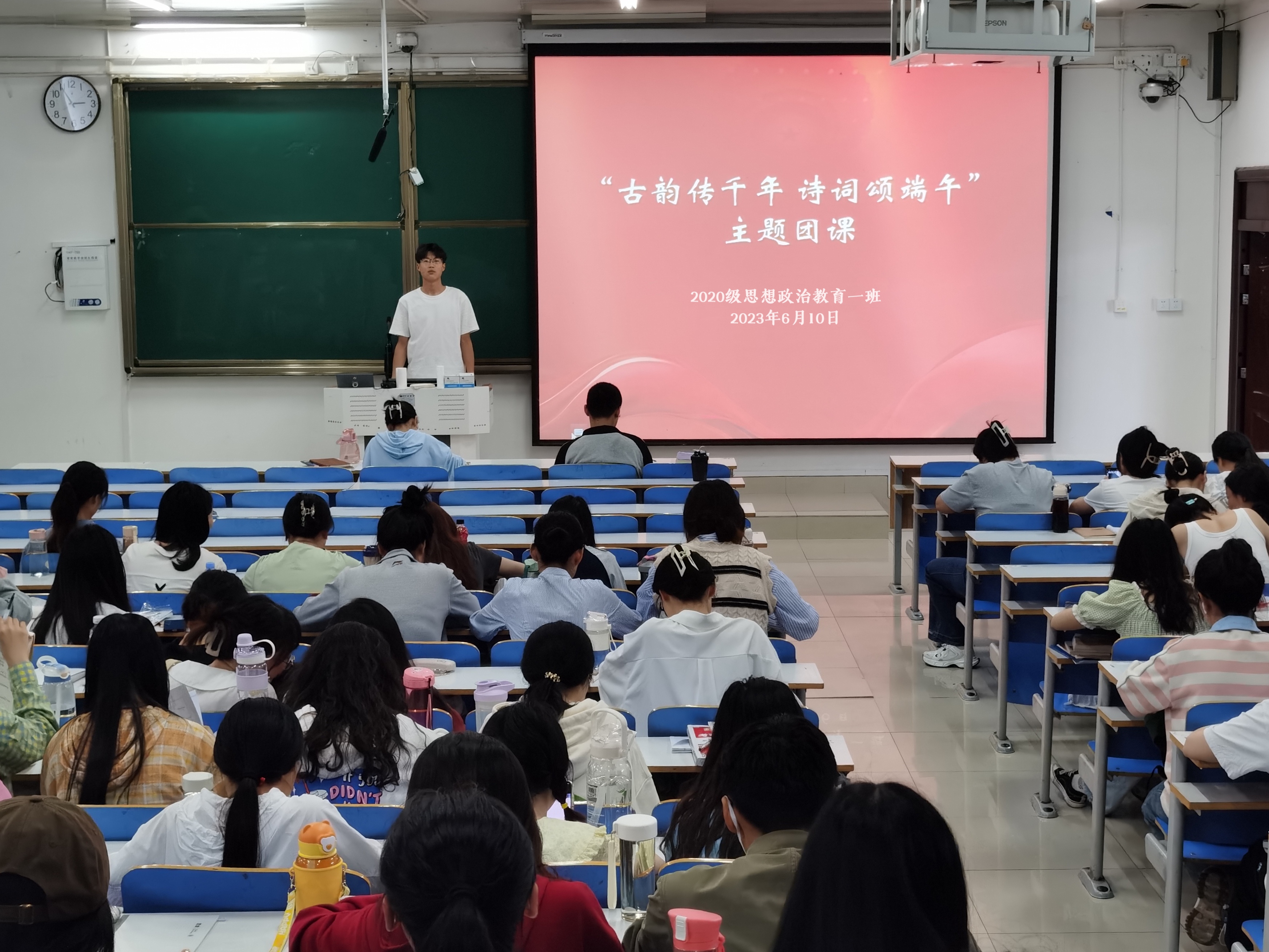 6月10日下午,sjb世俱杯网站2020级思想政治教育一班团支部在社科楼514教室开展“古韵颂千年,诗词颂端午”主题团课,2020级思想政治教育一班全体团员参加此次团课。团课由团支部副书记白帅豪主持。