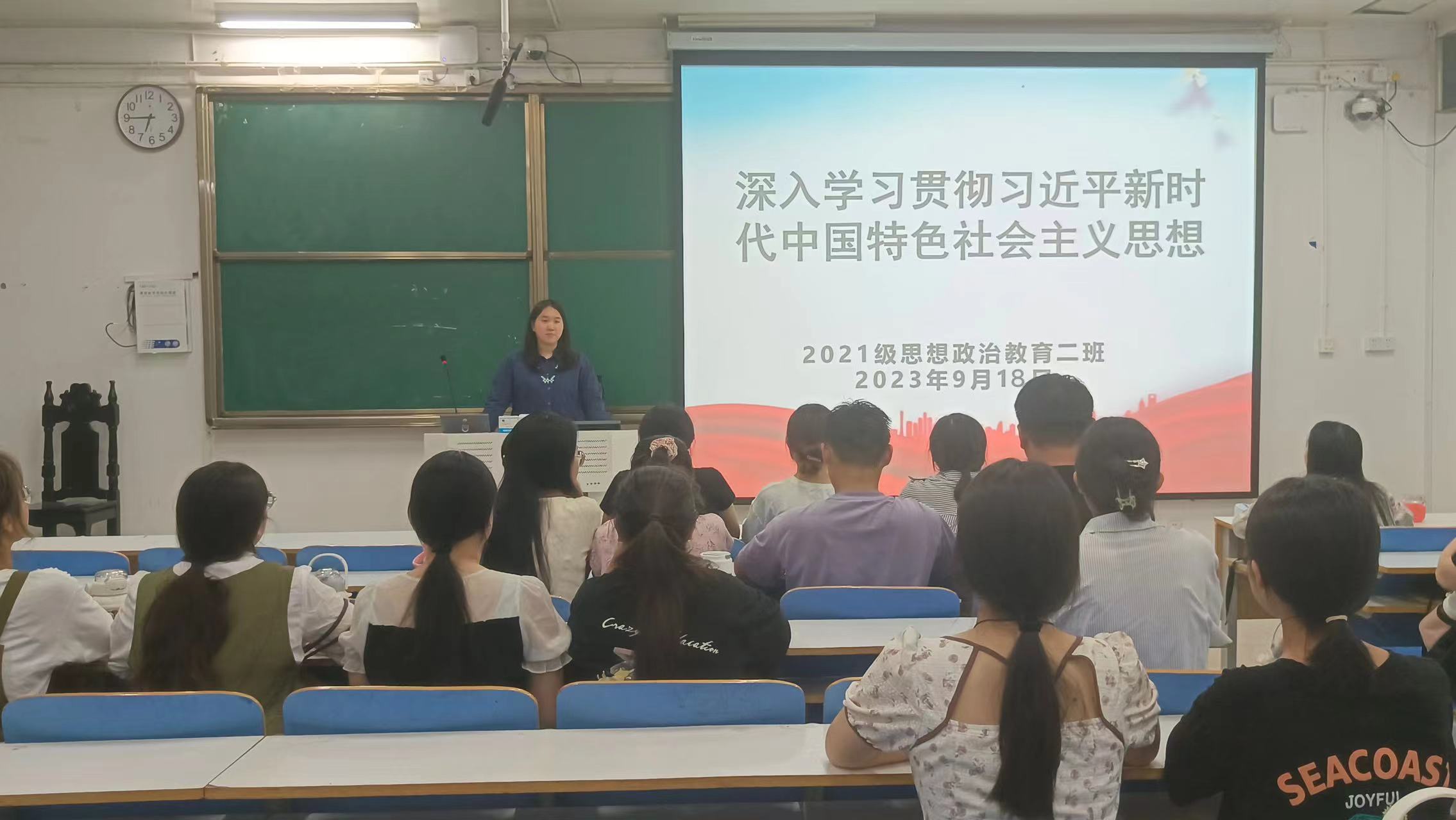 9月18日下午,sjb世俱杯网站2021级思想政治教育二班在社科楼514教室召开“深入学习贯彻习近平新时代中国特色社会主义思想”主题团课。2021级思想政治教育二班全体团员参加此次团课。团课由团支书王婧欣主持。