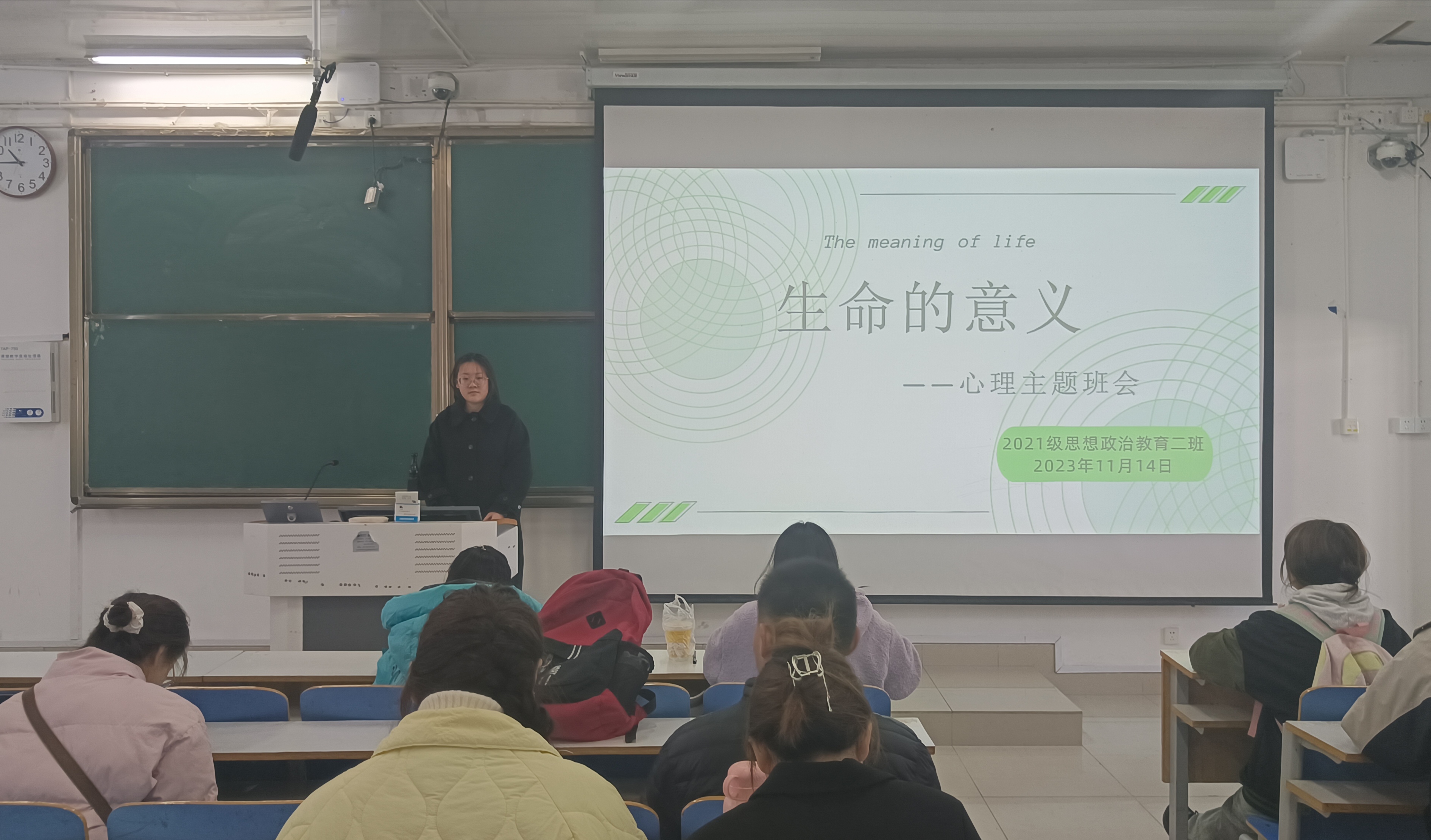 11月14日上午,sjb世俱杯网站2021级思想政治教育二班在社科楼514教室召开“生命的意义”心理主题班会。2021级思想政治教育二班全体同学参加此次班会。班会由心理委员李蕾蕾主持。