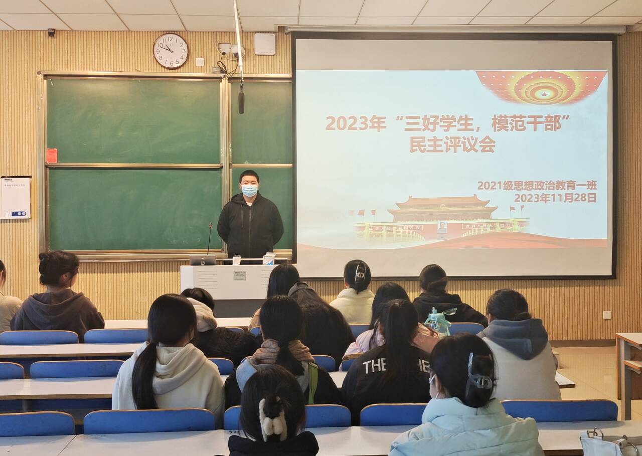 11月28日上午,sjb世俱杯网站2021级思想政治教育一班在社科楼515教室召开2023年“三好学生,模范干部”民主评议会。2021级思想政治教育一班全体成员参加了此次会议。会议由团支书戴翰林主持。