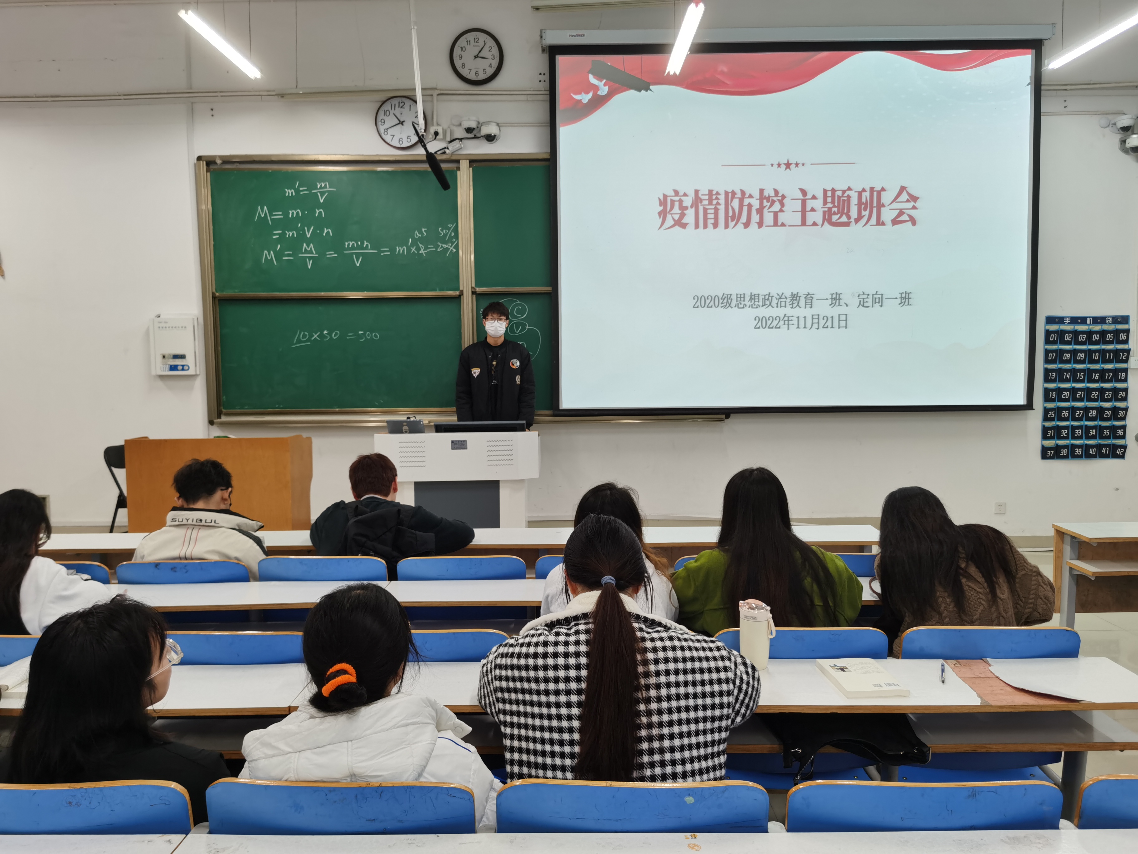 11月21日下午,sjb世俱杯网站2020级思想政治教育一班、定向一班在社科楼415教室召开“疫情防控”主题班会。sjb世俱杯网站2020级思想政治教育一班、定向一班全体同学参加了本次班会,班会由副班长白帅豪主持。
