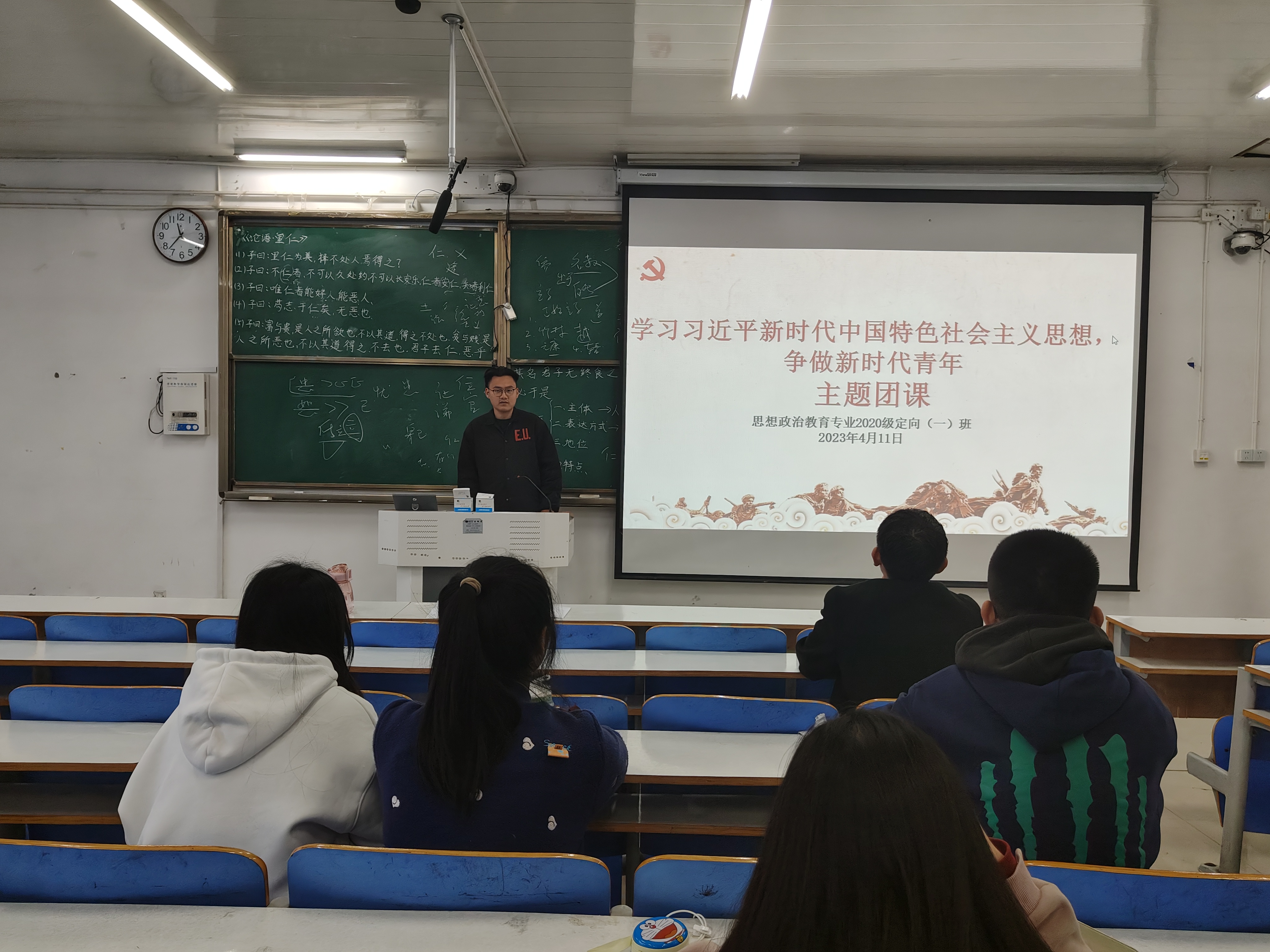 4月11日上午,sjb世俱杯网站2020级思想政治教育定向一班在社科楼514教室顺利开展了学习习近平新时代中国特色社会主义思想,争做新时代青年主题团课。此次团课由团支书朱紫峰主持。