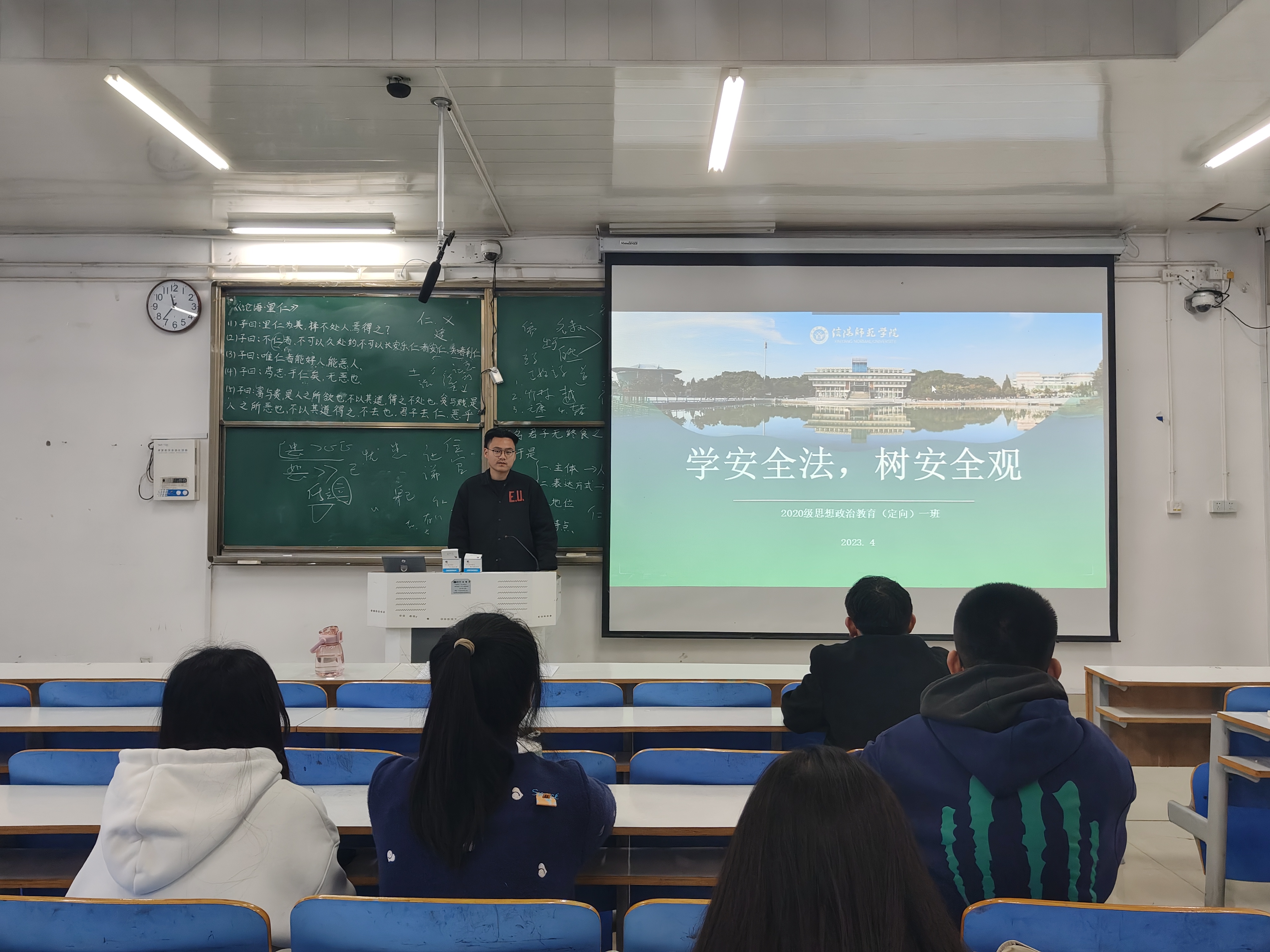 4月15日上午,sjb世俱杯网站2020级思想政治教育定向一班在社科楼514教室顺利举行了学安全法、树安全观主题班会。此次班会由团支书朱紫峰主持。