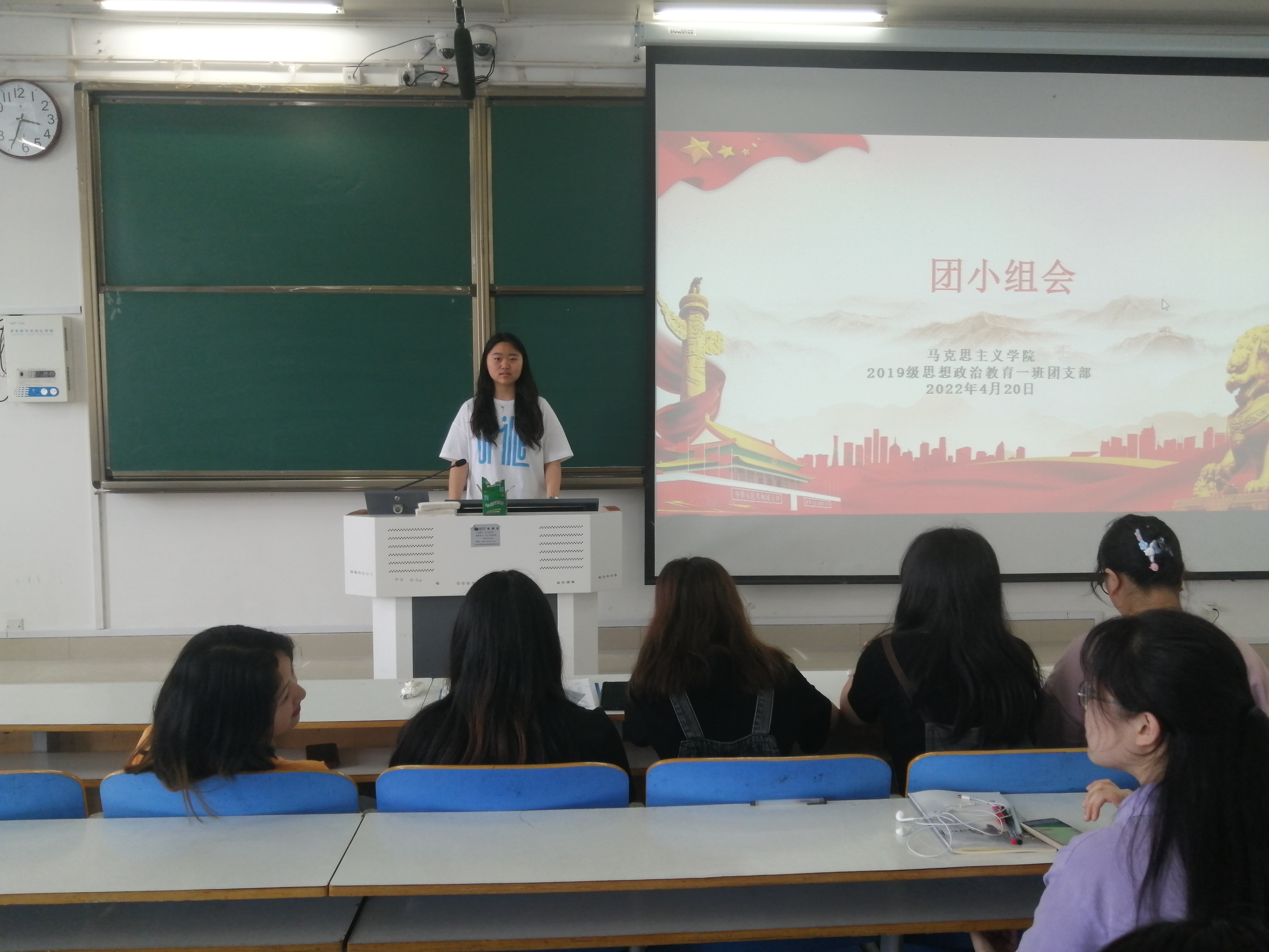4月27日下午,sjb世俱杯网站在社科楼514教室顺利开展“喜迎二十大 永远跟党走”主题教育活动。sjb世俱杯网站2019级思想政治教育一班第二团小组全体学生参与本次主题教育活动,活动由团小组组长程子硕主持。